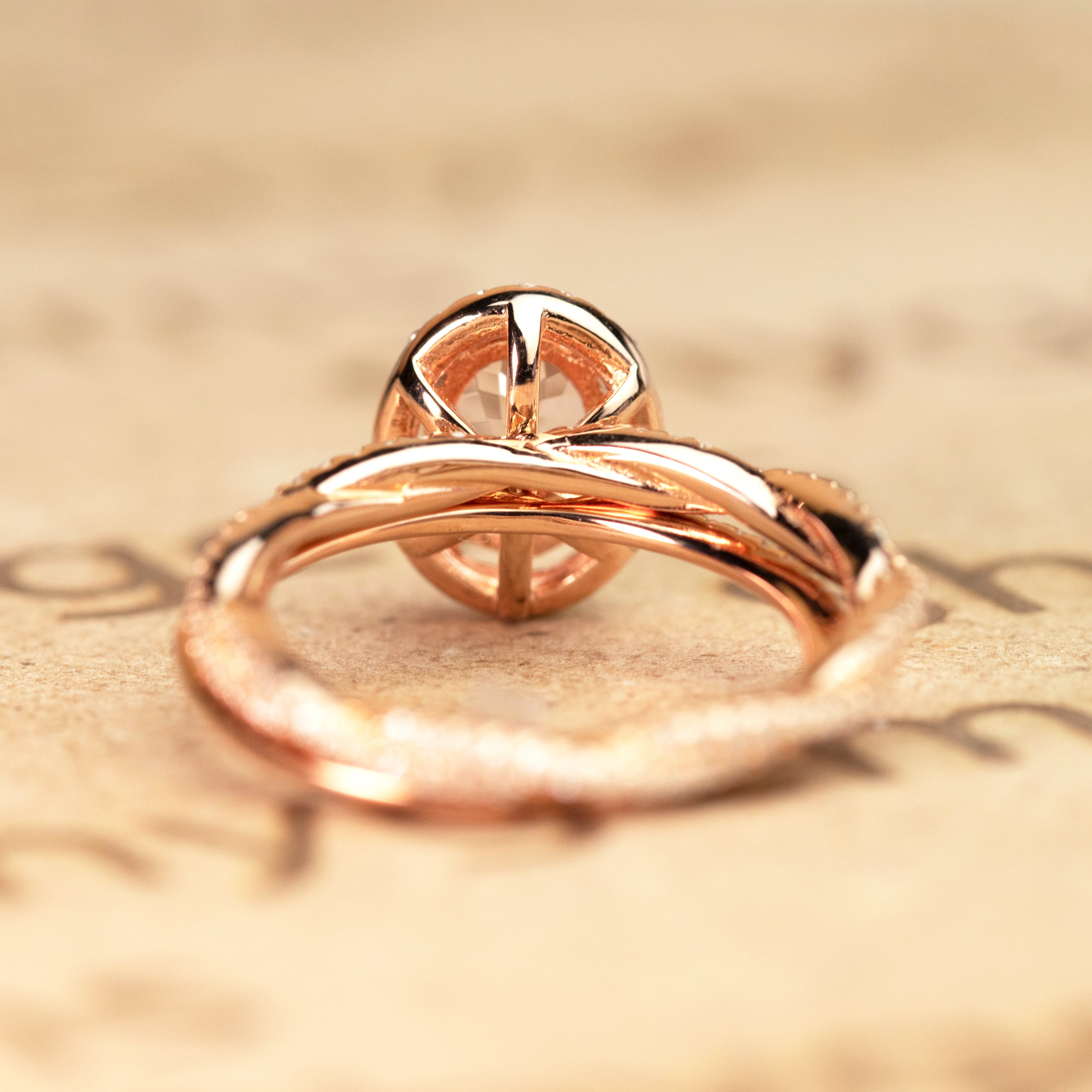 Unique 1.75 Carat Oval Cut Moissanite Wedding Bridal Ring Set in 18k Rose Gold Over Silver