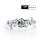 0.8 Ct Round Green Moss Agate 3-Stone Leaf Engagement Ring
