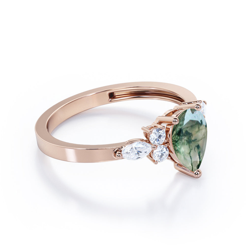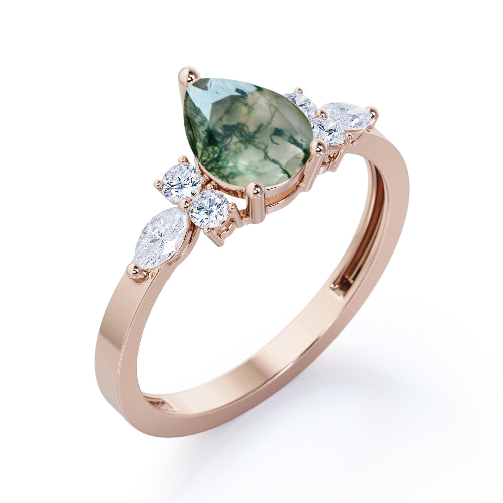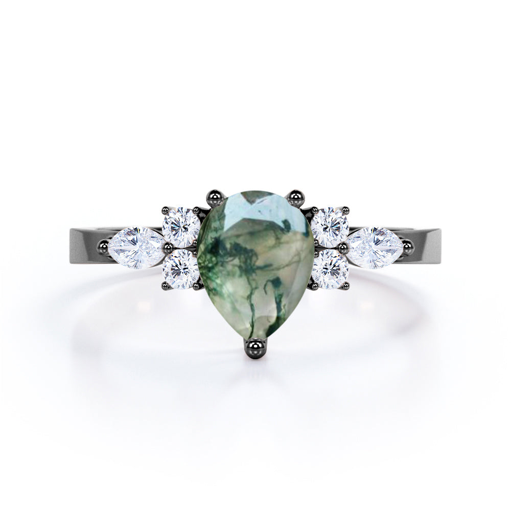 Seven Stone 1.1 Carat Pear Moss Agate Engagement Ring