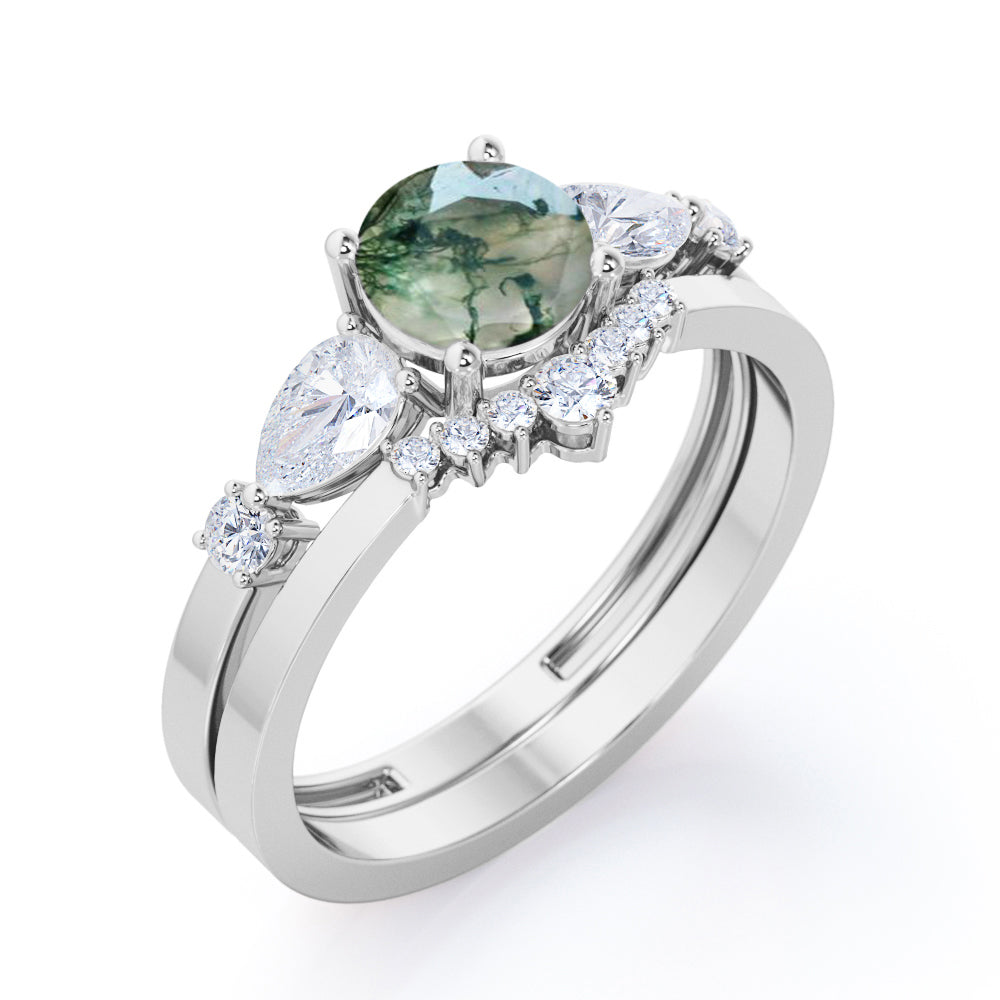Contour Crown 0.8 Carat Round Moss Agate Bridal Set