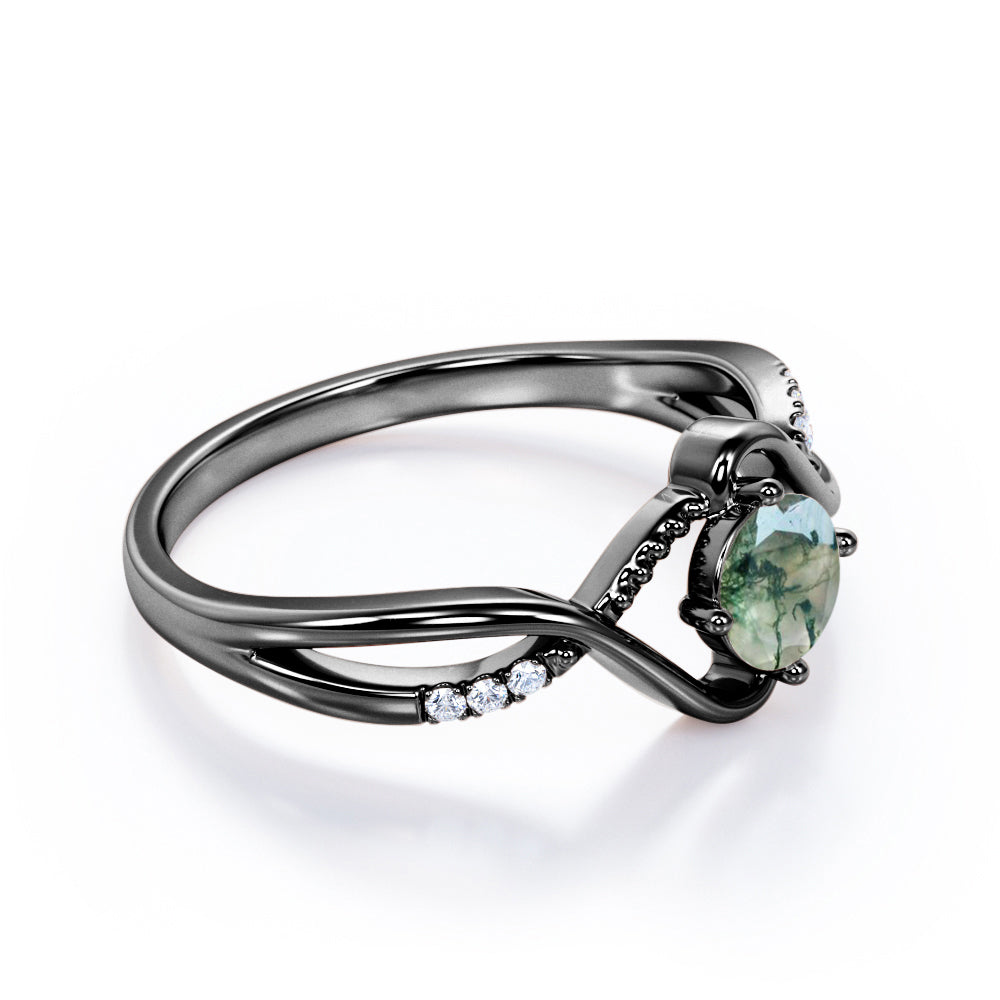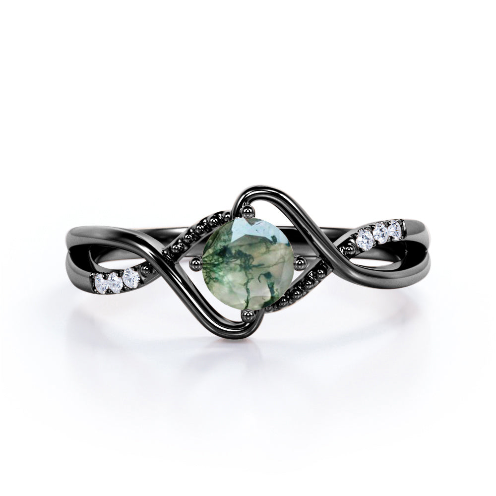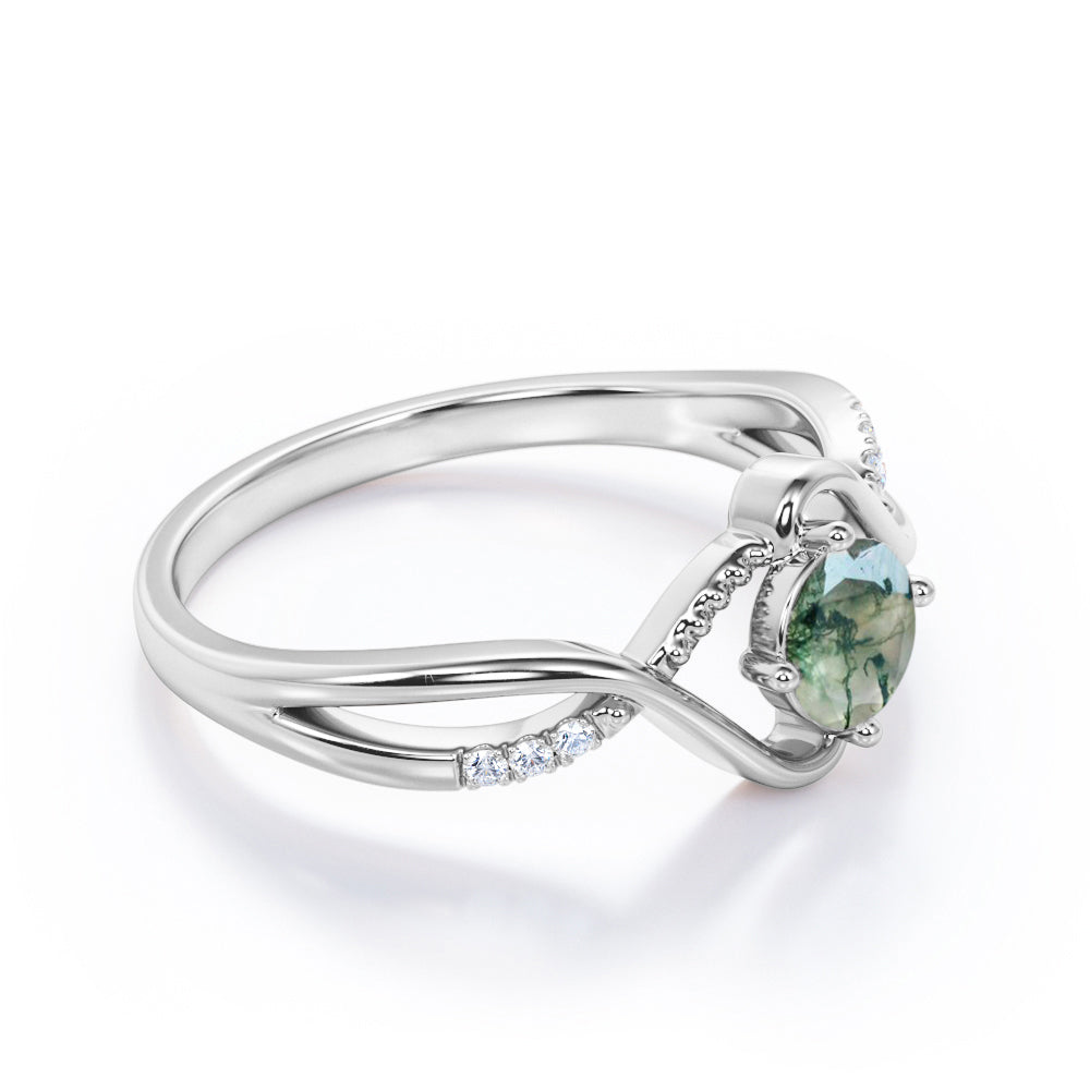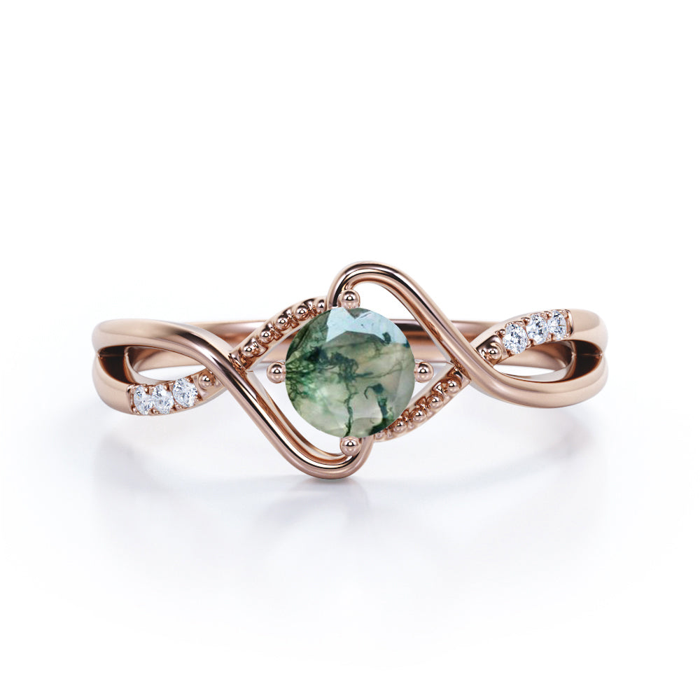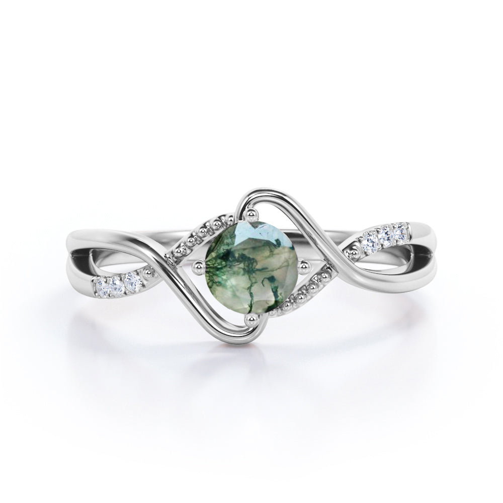 Infinity 0.6 Carat Round Moss Agate Engagement Ring