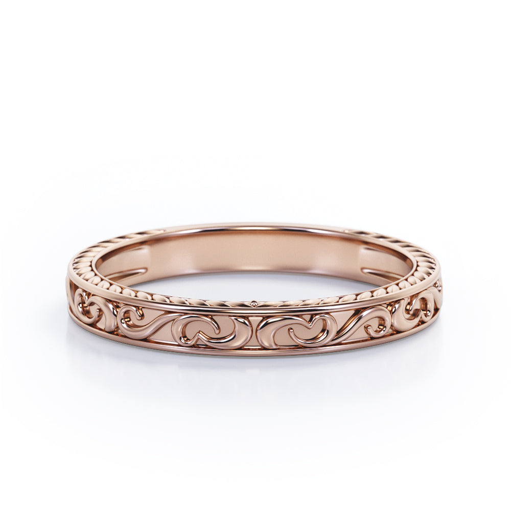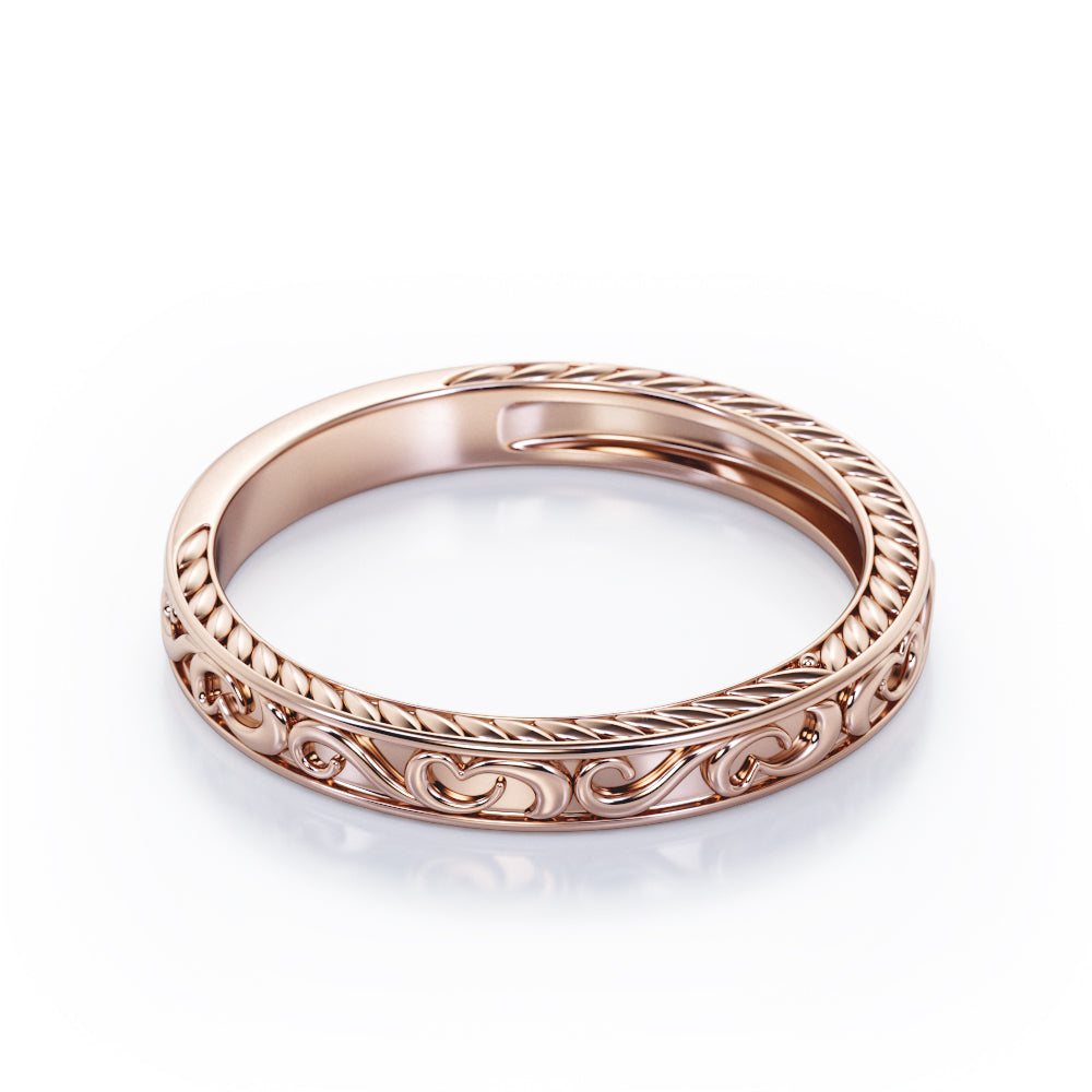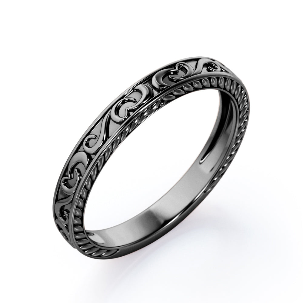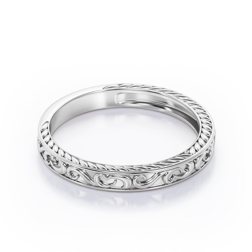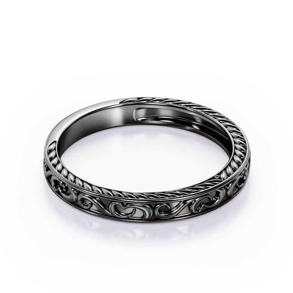 Create an impressive portrait of your love story with this Art Deco Ring - Filigree Design Ring - Handcrafted Wedding Band. Handcrafted with care by our most talented jewelers, this affordable wedding band is ideal for those who wish to express their charisma and uniqueness. This affordable wedding band will bring joy and good energy to its wearer. This band for women is a great choice for any woman's jewelry collection. This wedding ring band is the best gift you can give to your significant other. Your love story will be complete with this gold wedding band for women. This wedding band can be customized in 18K white, rose, yellow, or black gold over silver, or in 10K, 14K, and 18K gold, based on your preference.