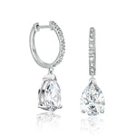 Elevate your elegance with the our 1.5 Carat Pear Cut Moissanite Hoop Earrings Pave Set with Charm in 18K White Gold over Silver. These hoop earrings with hanging charms earrings redefine sophistication, offering a harmonious blend of enduring beauty and affordability that complements a wide range of occasions. Meticulous craftsmanship shines through in these silver hoop earrings with charms, boasting micro moissanite stones in pave set, pear cut moissanite stone charms totaling to a total carat weight of 1.5 carat on intricate 18K white gold over silver setting. This ensures durability and longevity of the pave teardrop earrings. These small hoop earrings with charm silver earrings are more than adornments; they are reflections of your personal style journey. The pear cut adds a touch of sophistication, perfectly complemented by a size that commands attention, making these women's teardrop earrings the perfect companions for everyday elegance and special moments. Add to your precious earrings collection with these women's teardrop earrings.