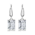 3 Carat Emerald Cut Moissanite Dangle Earrings for Women in 18K White Gold over Silver