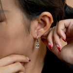 Behold the magnificence of our 3 Carat Emerald Cut Dangle Earrings for Women in 18K White Gold over Silver, a testament to the perfect fusion of affordability, durability, and versatility. These captivating emerald dangle earrings, featuring emerald-cut gemstones totaling 3 carats, radiate a timeless charm that effortlessly complements any ensemble. Additionally, these dangling emerald earrings are expertly set in 18K white gold over silver hence, enhancing further lustrous shine. The exquisite design also highlights the beauty of these silver dangle earrings. Regarding the design, these vintage dangle earrings are a stunning combination of elegance and contemporary style. The emerald-cut gemstones elegantly dangle from the earlobes, reflecting light from every angle of the dangle emerald earrings and captivating all who behold them. Apart from the extraordinary appearance, the moissanite leverback earrings are highly functional. The leverback closures of these moissanite dangle earrings can definitely ensure comfortable and functional wear. Whether you're attending a glamorous event or seeking to elevate your everyday look, these 3 carat moissanite earrings with leverback closures offer unparalleled versatility. They seamlessly transition from day to night, effortlessly enhancing your natural beauty and adding a touch of sophistication. Indulge in the affordability, durability, and versatility of these dangle hoop earrings. Embrace the enchantment of these leverback earrings, elegantly suspended from your ears, and revel in the timeless beauty that will accompany you on every memorable occasion.