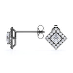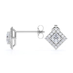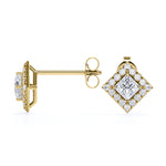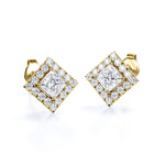 Bezel Set French Pave 1.10 Carat Princess Cut Certified Moissanite and Diamond 4 Claw Ear Studs for Women in Yellow Gold