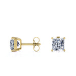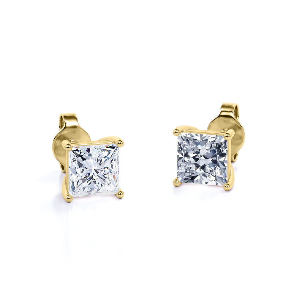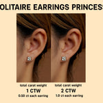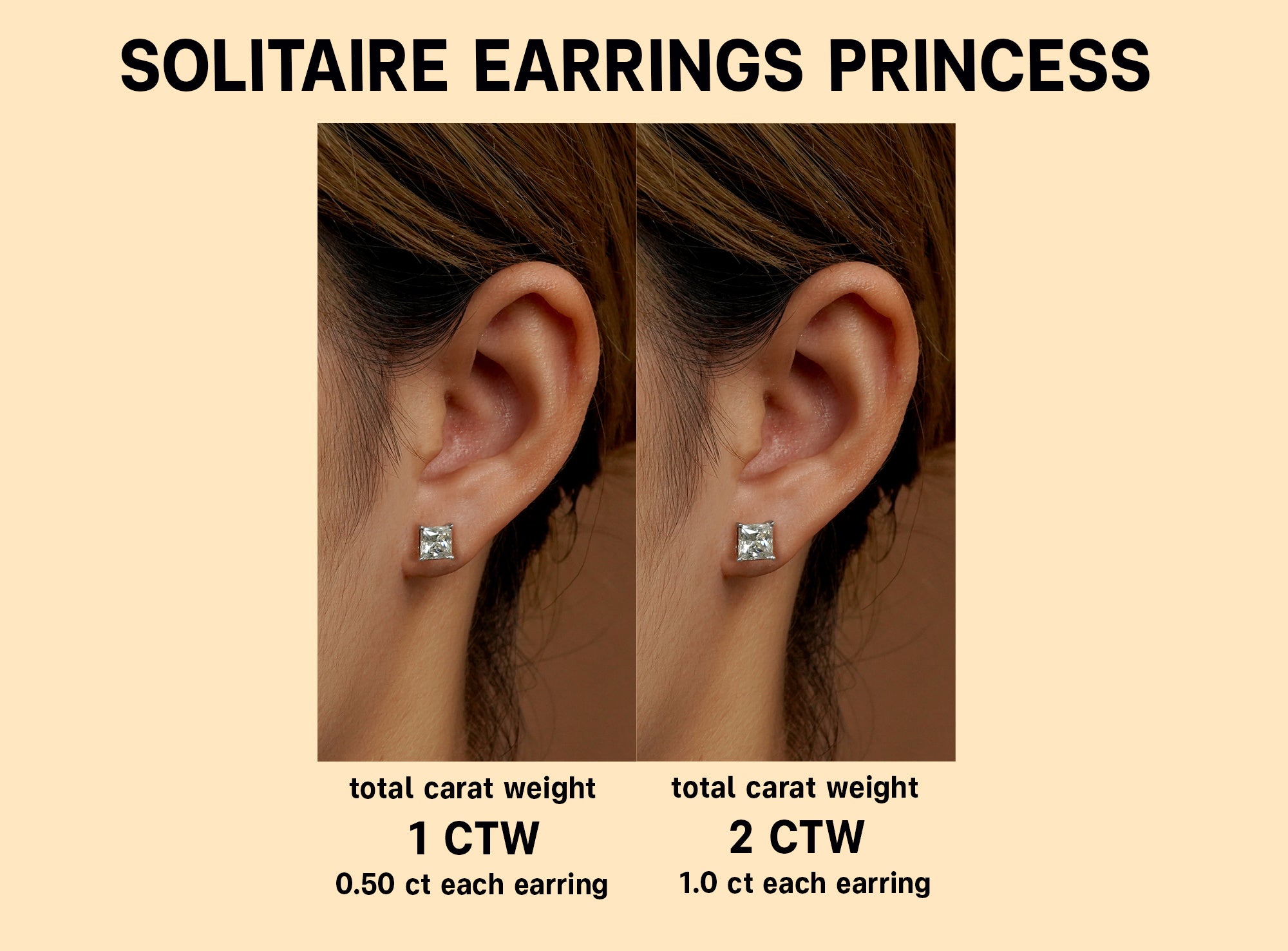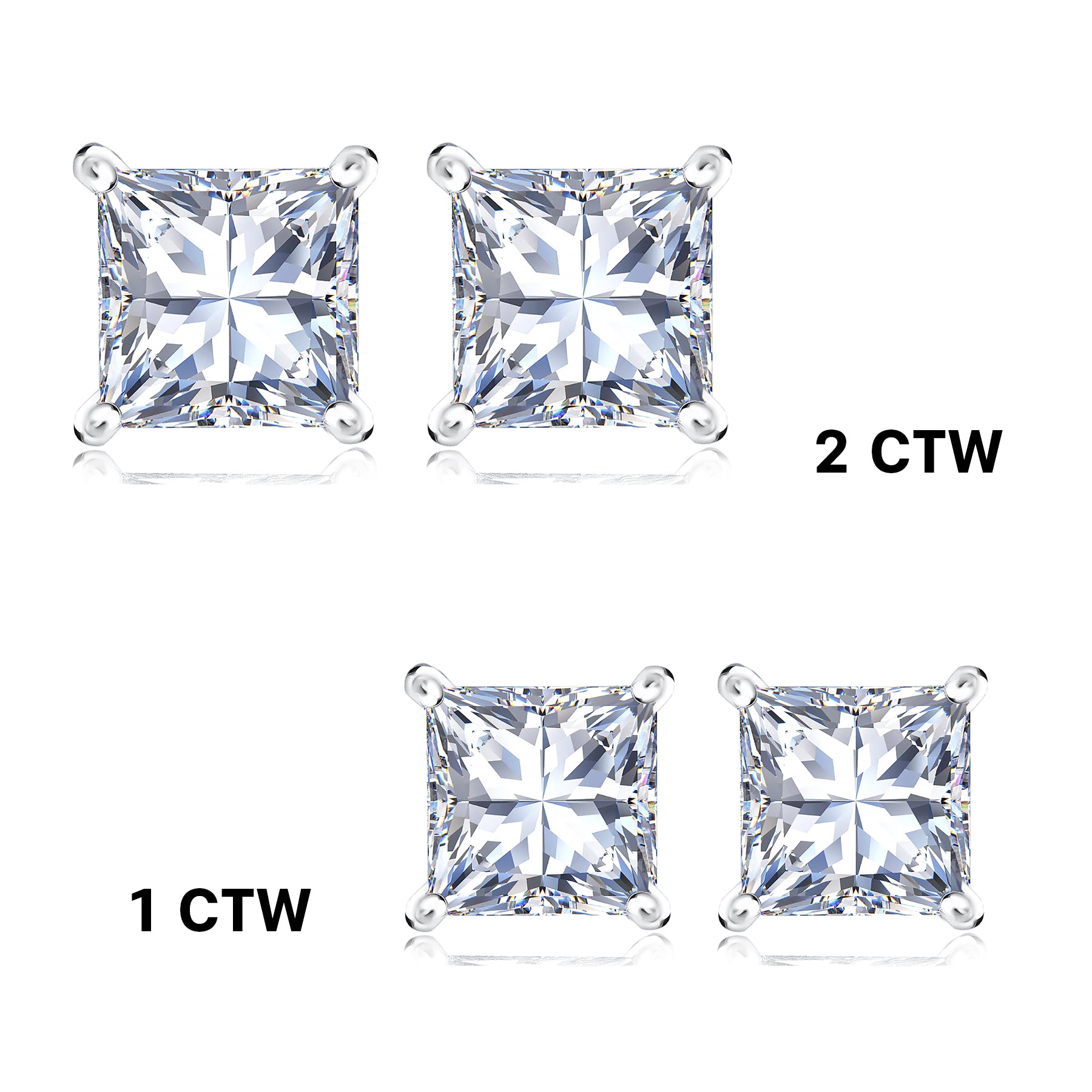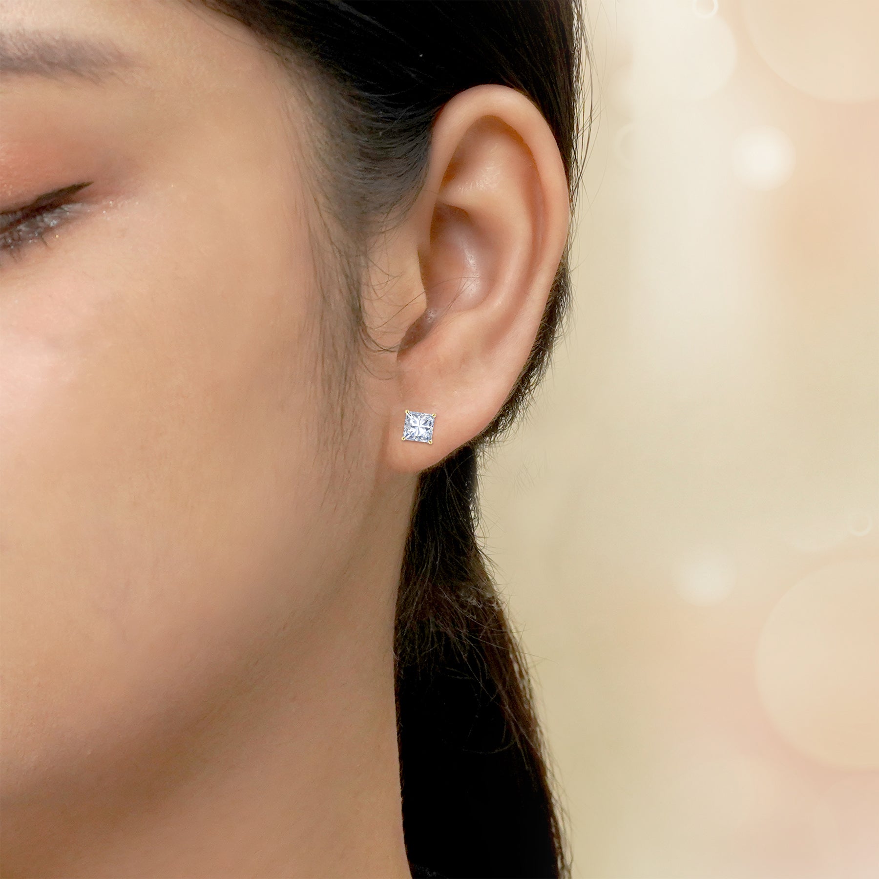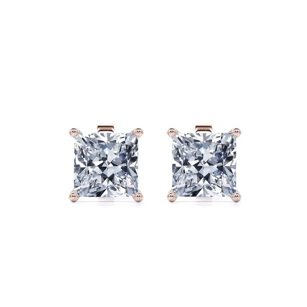 Make your special day most memorable with these Certified - 4 Prong - 1 Carat Princess Cut Moissanite - Solitaire Stud Earrings - 18K Rose Gold Plating Over Silver. Professionally handcrafted into a fine princess cut by our experts in lapidary, these flawless moissanite screw-back stud earrings integrate 1 carat moissanite on rose gold plating over silver, and each side of the earrings weighs 0.5 carat. Special and non-traditional, these earrings with moissanite gemstones is well-suited for those who are not quite into normal lifestyle. With naked eyes moissanites look, shine and feel exactly like diamonds. With its glory and clarity, these moissanite solitaire stud earrings will unquestionably be an essential additional to any jewelry collection. These moissanite screwback earrings are beautiful and accessible since it is available at a reasonable price. Moissanites are the most popular alternative gemstone for diamonds while being at lower and more affordable price. These solitaire stud earrings , the birthstone earrings for April, symbolically representing strength and an unbreakable love, will be the greatest choice you will ever make. These moissanite stud earrings can be customized to your own choice of metal colors: 18K white gold plating over silver, 18K rose gold plating over silver, or 18K yellow gold plating over silver. In regards to its hardness, moissanite is almost as hard as diamond which means that it is notably durable. Let's fulfill your love story with these solitaire stud earrings and, surely, she will not regret it.