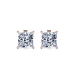 Certified - 4 Prong - 1 Carat Princess Cut Moissanite - Solitaire Stud Earrings - 18K Rose Gold Plating Over Silver
