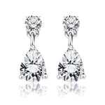 Classic 2.5 Carat Round and Pear Cut Dangle Moissanite Earrings in 18k White Gold over Silver, Women