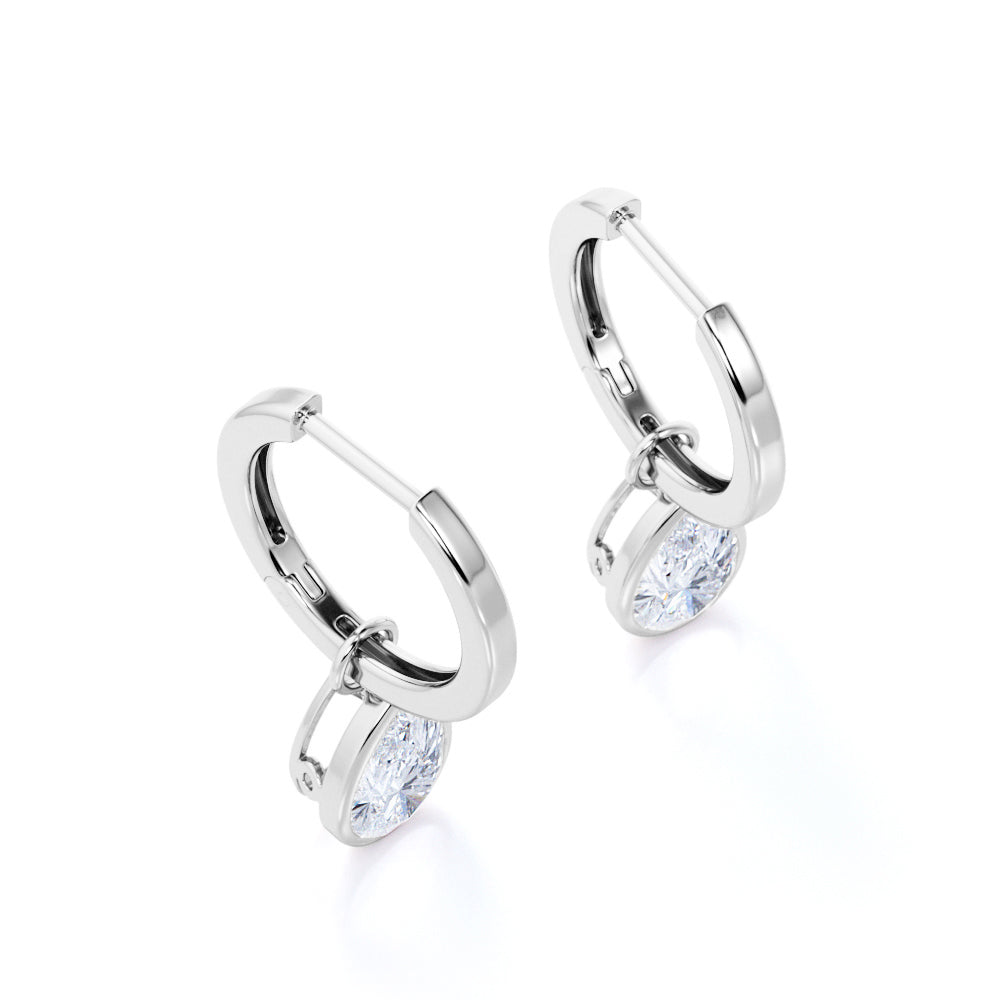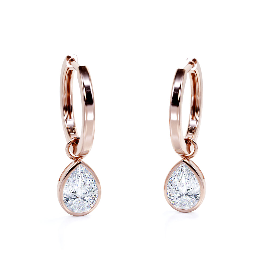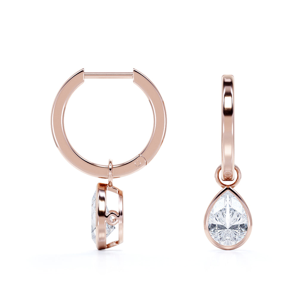 Solitaire 1 Carat Pear Cut Moissanite Bezel Set Hoops Earrings In White Gold