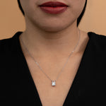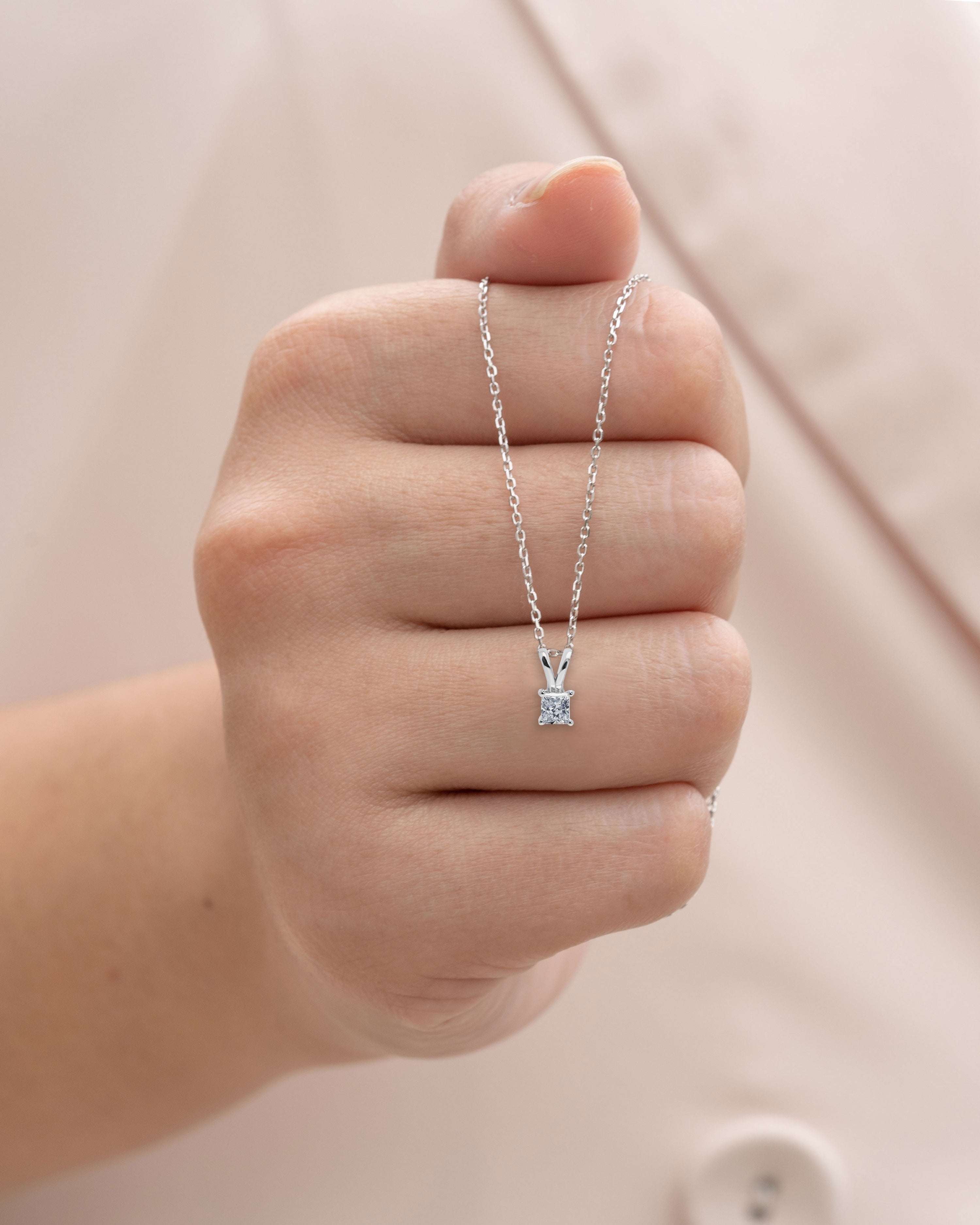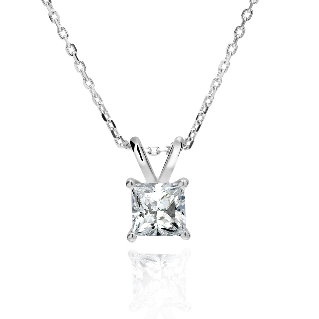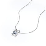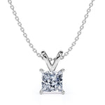 Claw Set Solitaire 1 Carat Princess Cut Certified Moissanite Double Bail Pendant Necklace in White Gold