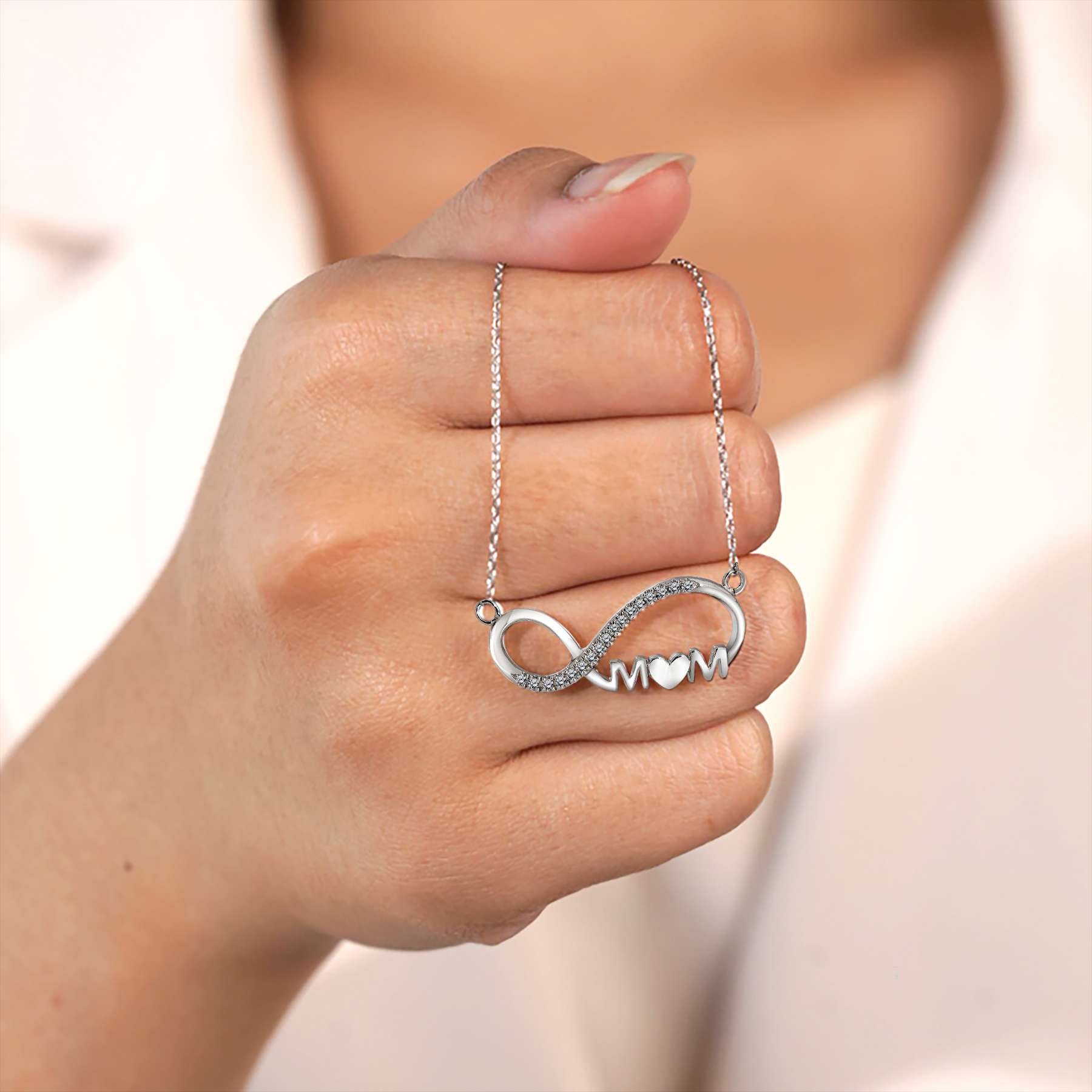 Express your love and affection for your mother with our Infinity Mom Moissanite Pendant Necklace in 18K White Gold over Silver. Professionally crafted to perfection, this moissanite chain pendant integrates 0.2 ct moissanite in 18K White gold over silver. The chain of this beautiful moissanite necklace comes in white and is 18 inches long. Elegant and authentic, this is the perfect moissanite chain necklace. This silver moissanite pendant will get you endless compliments. This moissanite chain pendant is an incomparable and affordable beauty. This silver moissanite pendant is the most beautiful way to show your mother how much she means to you. Cherish your precious ones with our silver moissanite pendant and it will prove every penny worth.