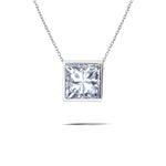 Minimalist 1 ct Princess Cut Moissanite Bezel Slider Pendant Necklace for Her in 18K White Gold over Silver