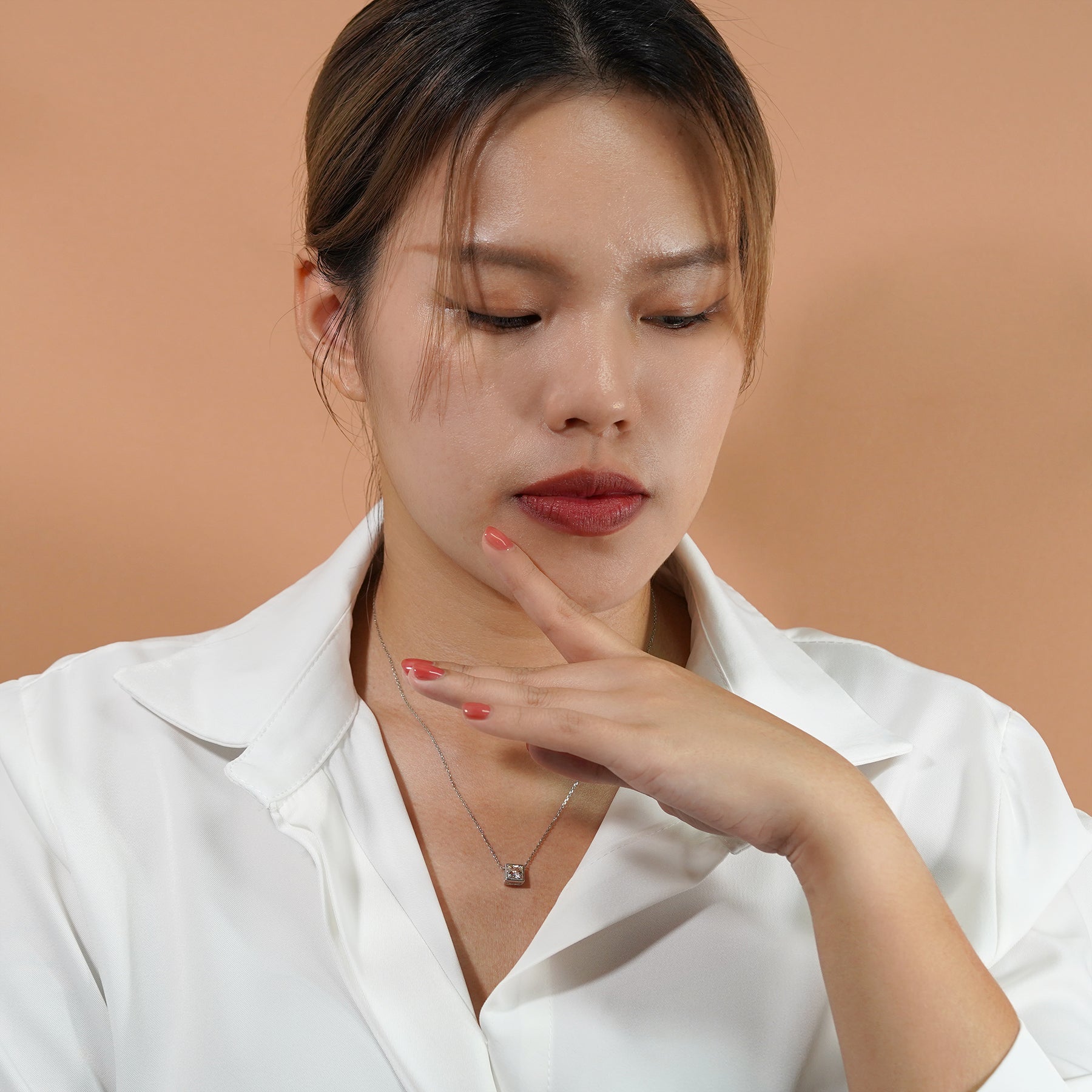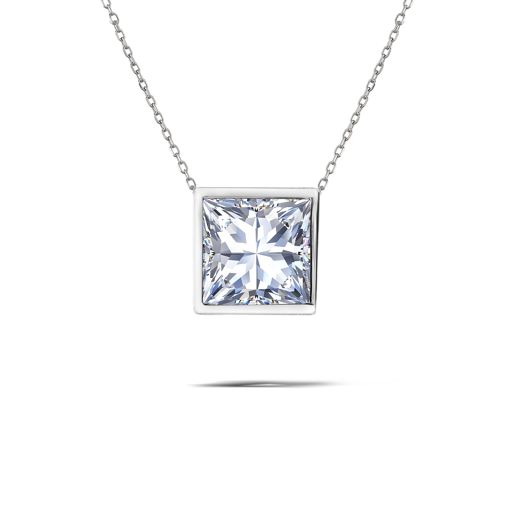 Proudly presenting our Minimalist 1 ct Princess Cut Moissanite Bezel Slider Pendant Necklace for Her in 18K White Gold over Silver. This minimalist jewelry necklace is presented in 18K White Gold over Silver, showcasing the captivating allure of a 1 carat Princess Cut Moissanite in a sleek bezel pendant design. Our dainty minimalist necklace is designed to be cherished by the modern woman who appreciates the understated beauty of simplicity. The solitaire bezel pendant adds a touch of contemporary charm, making the moissanite pendant necklace effortlessly complement any outfit. This women's minimalist necklace embodies the essence of style, suitable for those looking for an addition to their moissanite jewelry pendant collection.