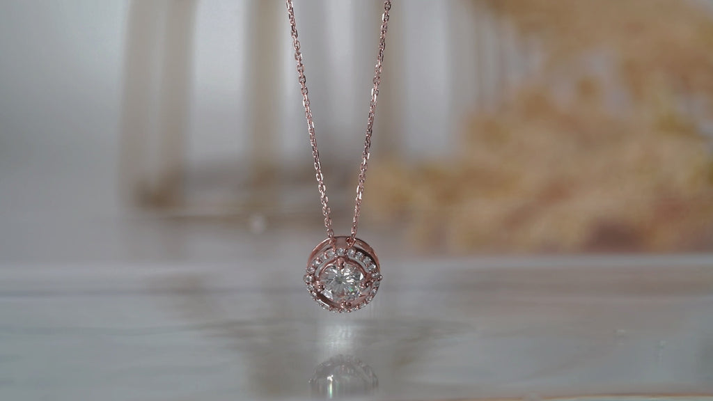Solitaire 1.25 Carat Round Cut Real Moissanite Halo Pendant Necklace in 18k White Gold Over Silver