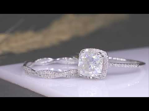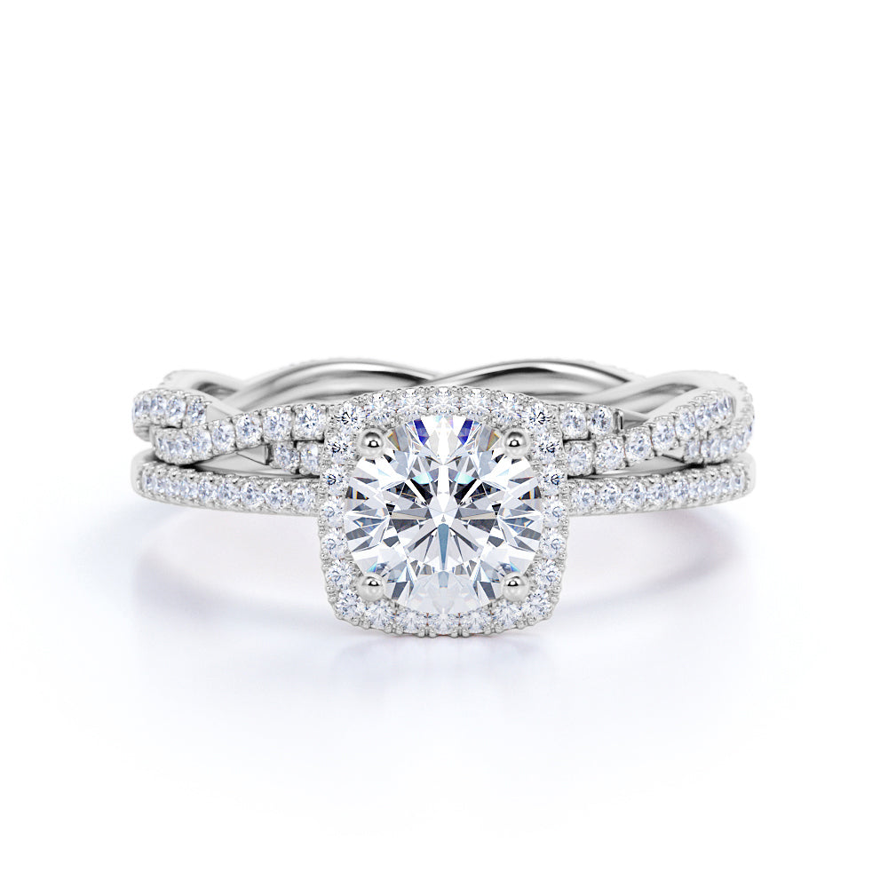 Pave 1.5 Carat Round Cut Moissanite Halo Wedding Ring Set