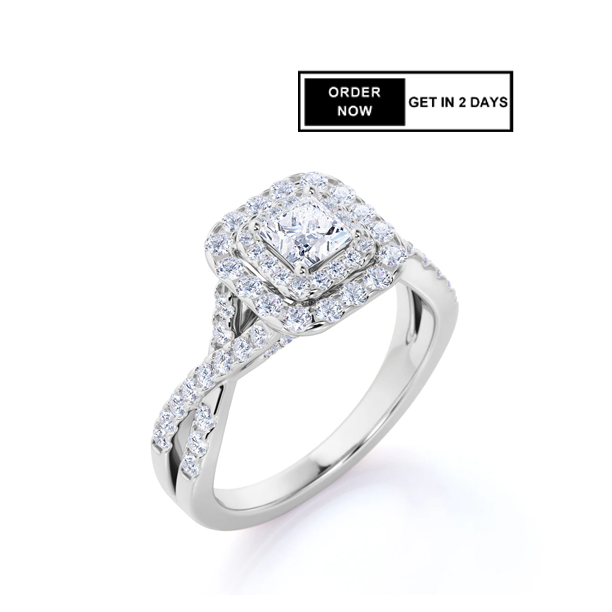 1 Ct Princess Moissanite Double Halo Engagement Ring