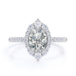 Pave 1.50 Carat Oval Moissanite Halo Engagement Ring