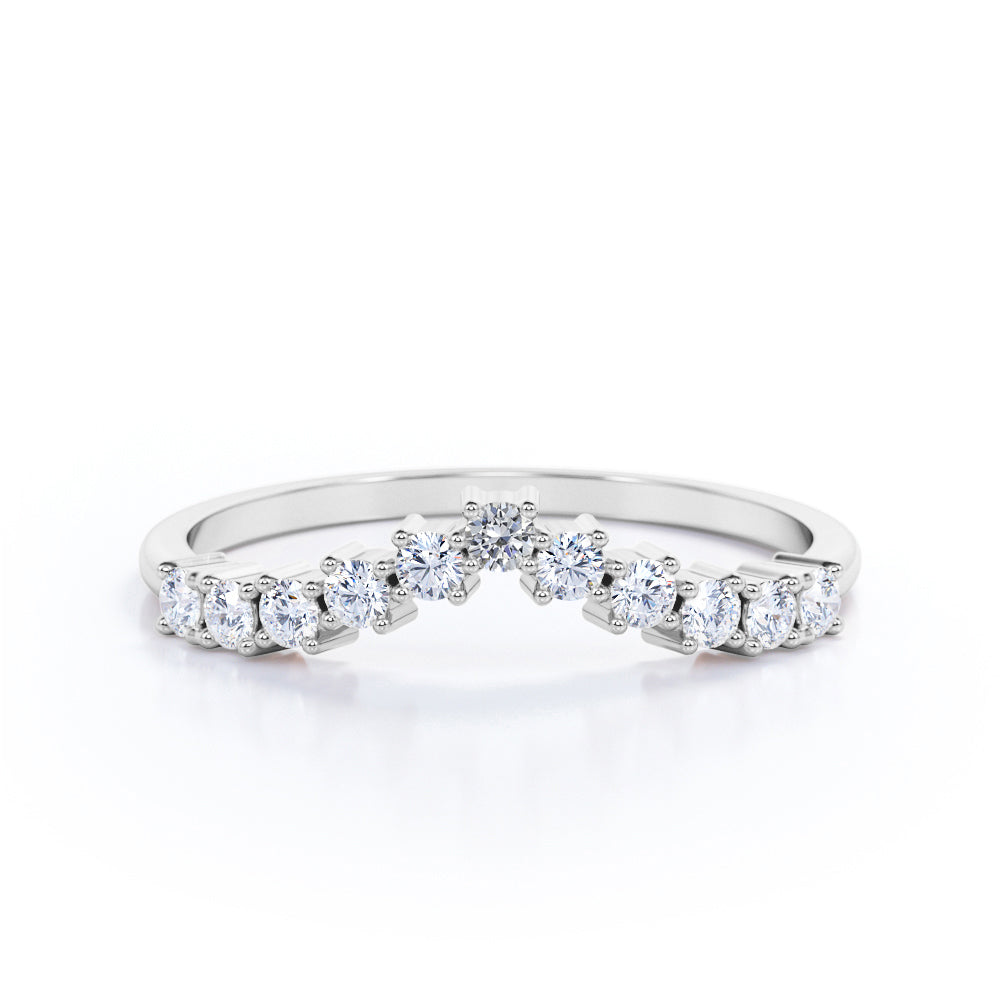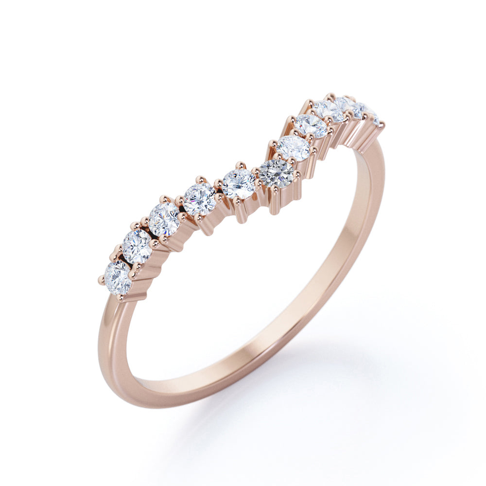 Curved 0.20 TCW Round Cut Pave-Prong Wedding Band