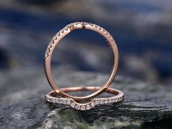 Pair of .50 Carat Round cut Moissanite Wedding Ring Band Art Deco. The Perfect wedding band comes with delicate design, chic style and pristine glamour. The band comes with its own Free Elegant Jewelry Box. Your order also comes with a Jewelry certificate and 30 Days Full Refund policy. Please note that the 30 days refund date only starts from the date the order is delivered to you.