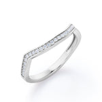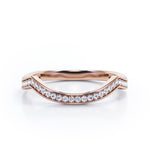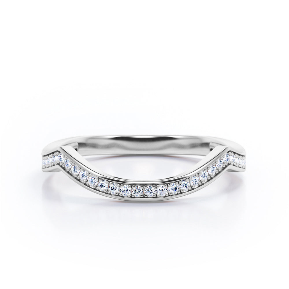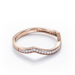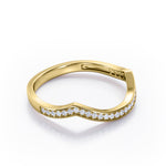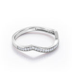 Bring out the sparkle in someone you care about with this Channel Set 0.15 TCW Arched Wedding Band. Handcrafted with care into a wonderful round cut by our lapidary expertise, this exceptional inexpensive Moissanite wedding band features total 0.15 carat. Distinct and unusual, this Moissanite wedding ring band is ideal for those who wish to express their charisma and uniqueness. This women's Moissanite wedding band will bring joy and good energy to its wearer. This anniversary Moissanite wedding band is a great choice for any woman's jewelry collection. this Moissanite band, the birthstone ring for the fourth month, represents riches and extravagance and would make an excellent gift for friends or your better half. Also, this women's Moissanite band can be customized to your own choice of metal colors: white gold, rose gold, black gold, or yellow gold. Let's show her how much you care by giving her this Moissanite band.