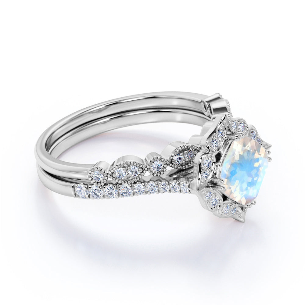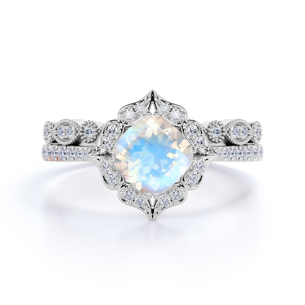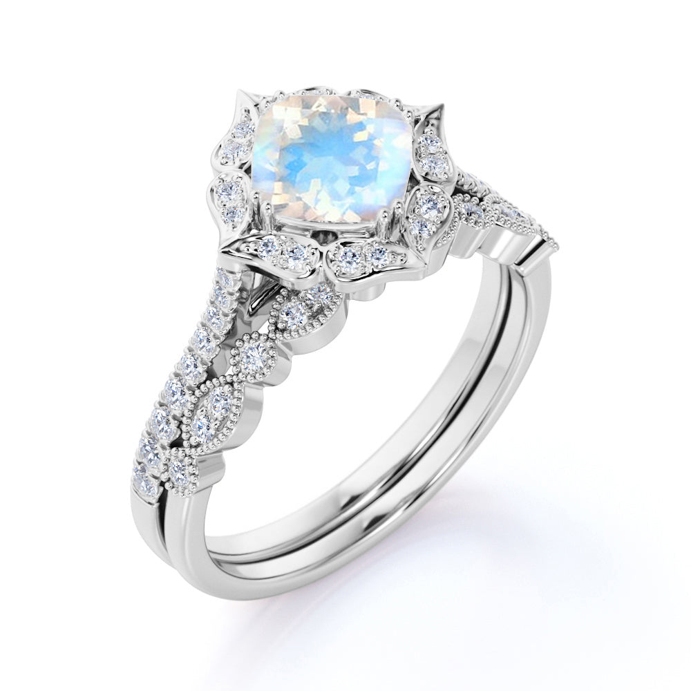 1.75 ct Cushion Rainbow Moonstone Vintage Bridal Set