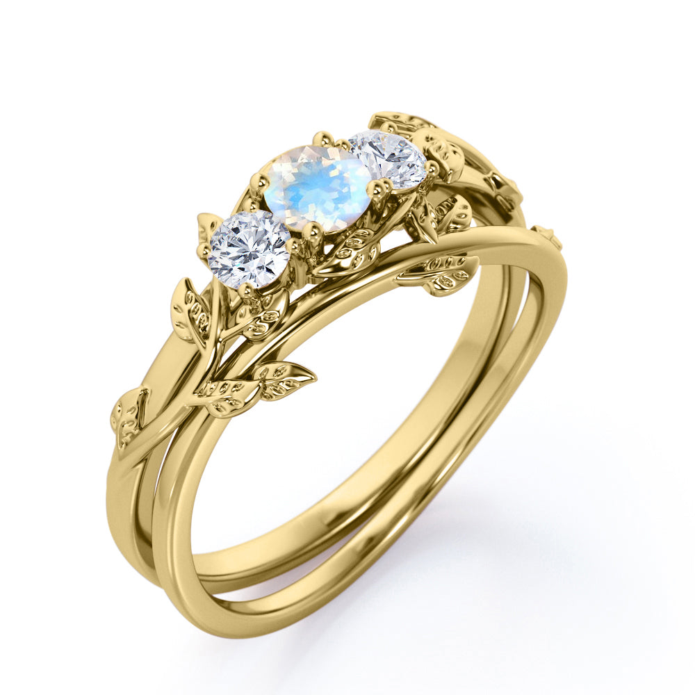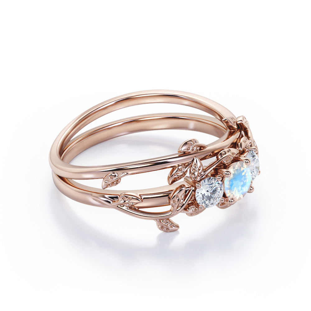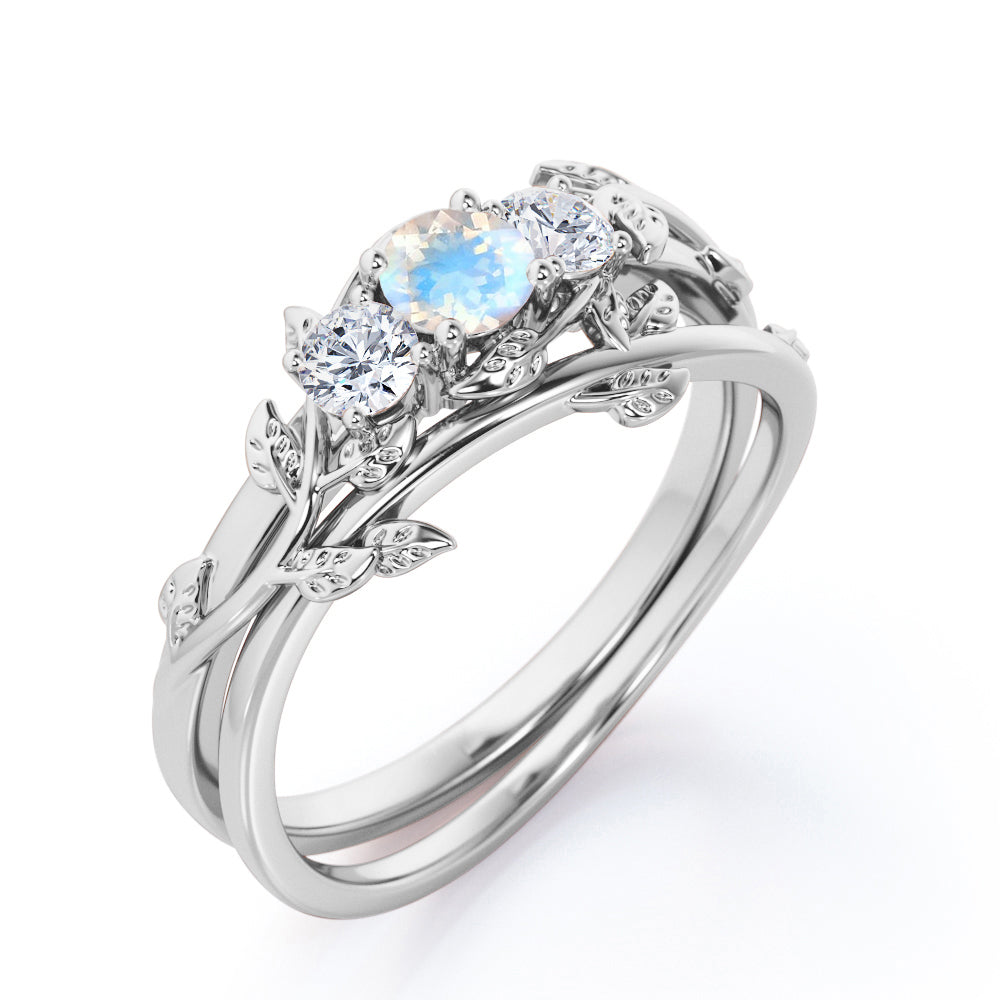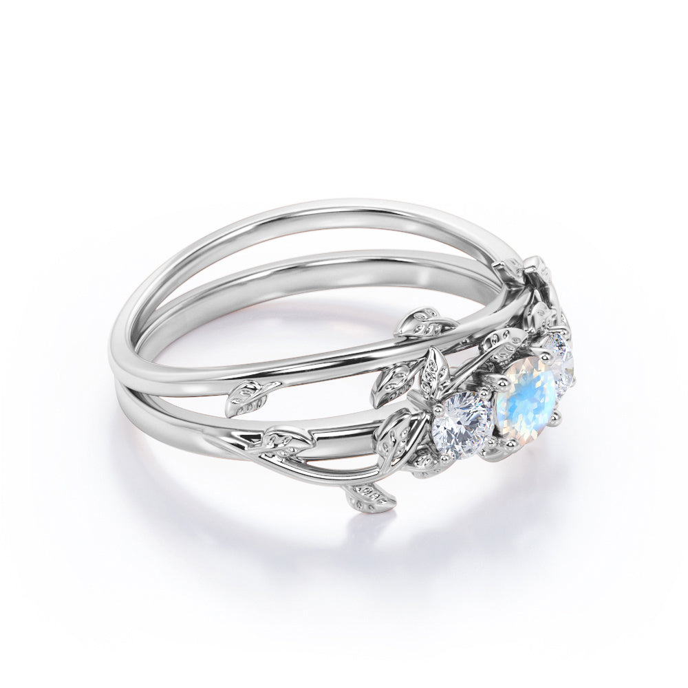 0.7 ct Round Moonstone Leaf Vine Bridal Set