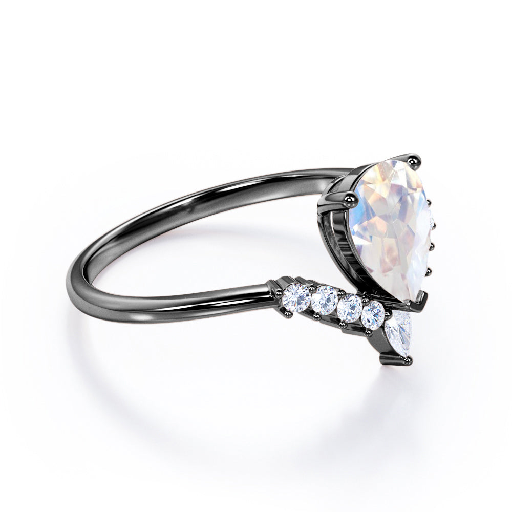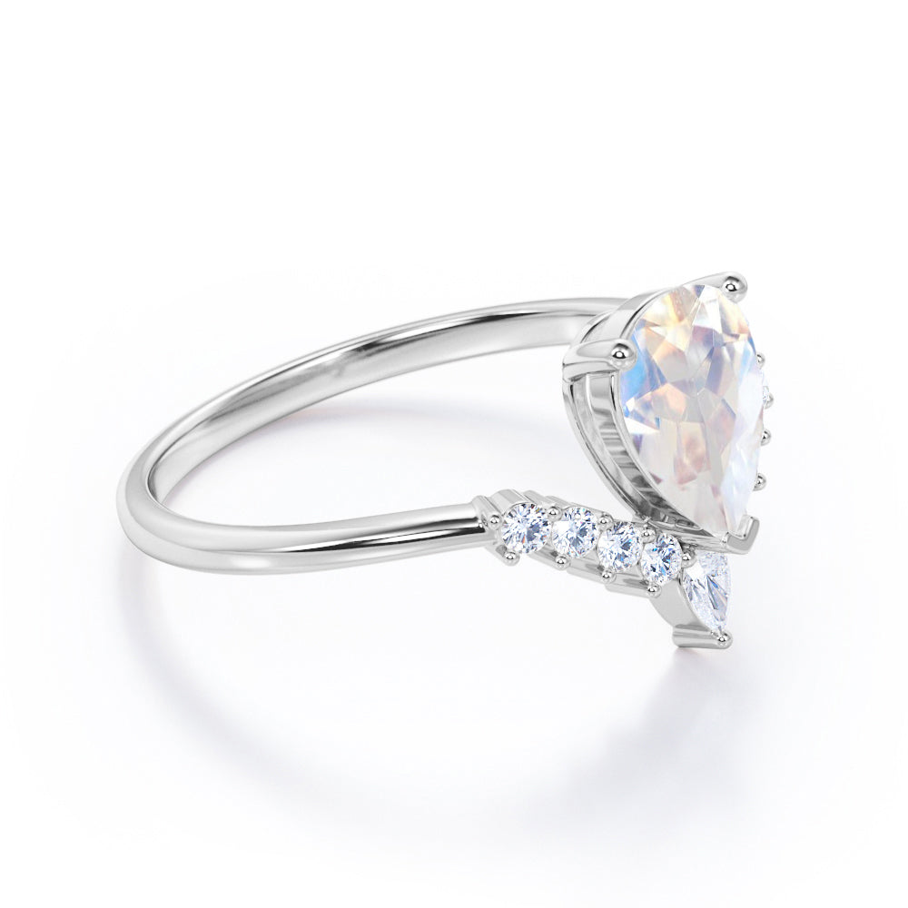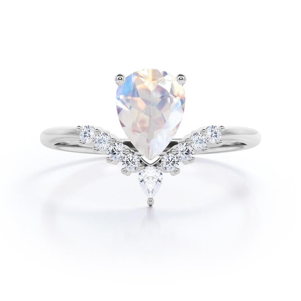 0.9 ct Pear Moonstone V shaped Engagement Ring