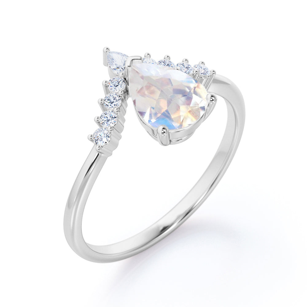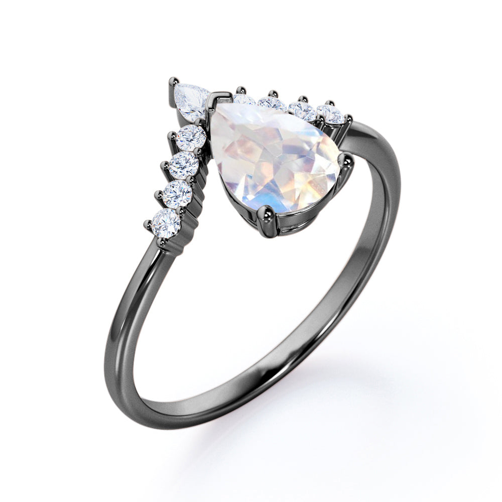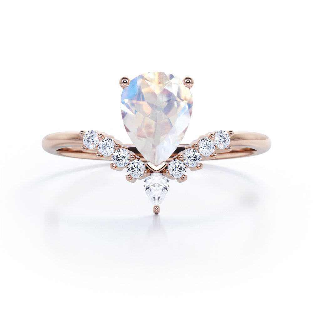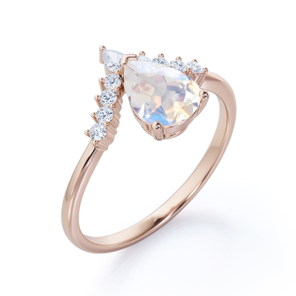 0.9 ct Pear Moonstone V shaped Engagement Ring