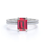 When you are looking for engagement rings, wedding rings, promise rings, anniversary rings, or any other rings, your mind may automatically think of diamond rings. But that doesn't have to be your only option. This 1.50 Carat Emerald Cut Genuine Ruby Wedding Set Classic Ring Band 18k White Gold over Silver will show you why. This Ruby silver ring is very affordable and well suited for everyday wear. This unique Ruby ring is very well suited for those looking for a unique and fashionable jewelry. It features 1 carat emerald cut pigeon blood Ruby and 0.50 carat moissanites that can be a perfect alternative to diamonds as moissanites have almost the same durability and quality as with diamonds that will last for a lifetime. Also, as your satisfaction is our most priority, we will do our best to have your handmade jewelry be carefully and beautifully crafted by our expert jewelers. The order also comes with a 30-day full refund policy.
