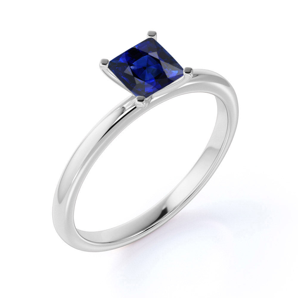 Solitaire 1 Ct Princess Cut Lab Sapphire Engagement Ring
