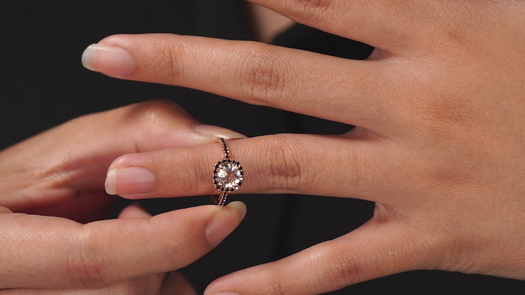 - The Morganite and Black Diamond Engagement Ring can be made in either 10k, 14k, or 18k real solid gold and in any color between Rose, White or Yellow.