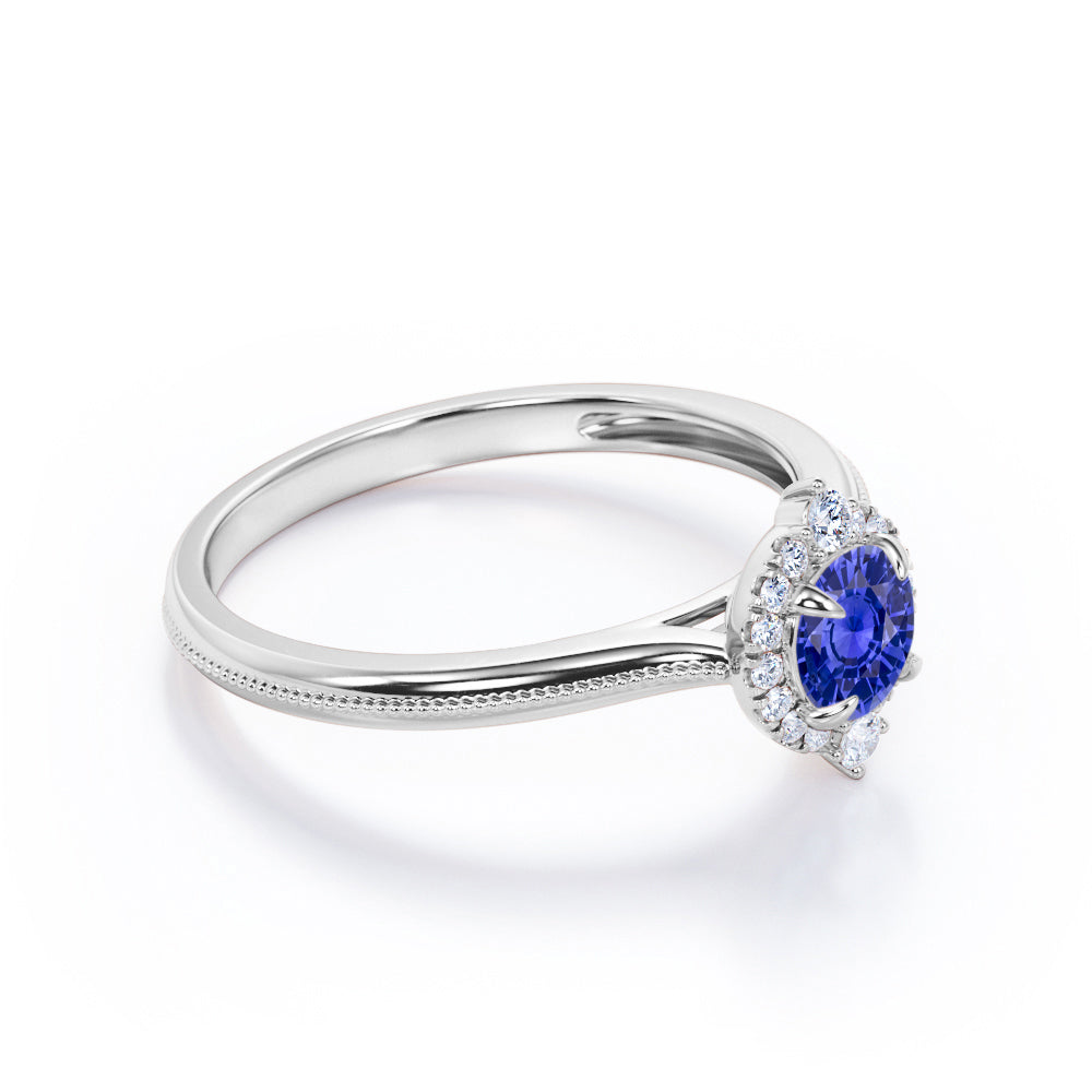Milgrain 0.70 Ct Round Cut Lab Sapphire Engagement Ring