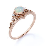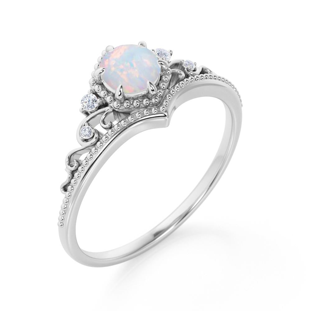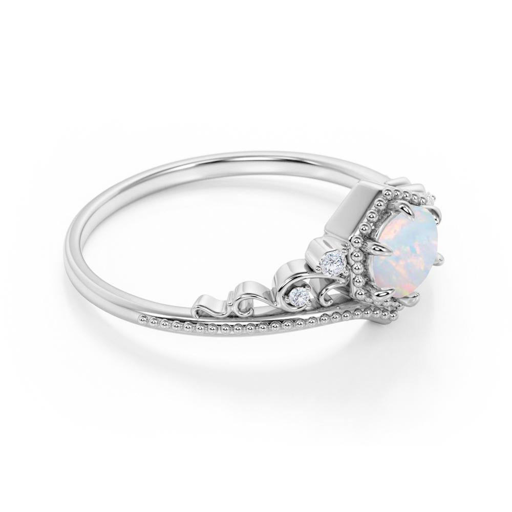 Crown 0.75 Ct Round Cut Lab Created Opal Engagement Ring