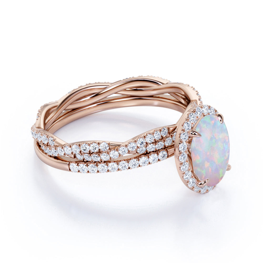 Halo 1.75 Ct Oval Cut Lab Created Opal Wedding Ring Set