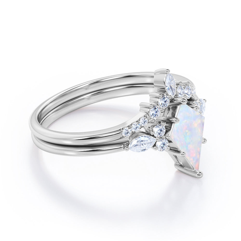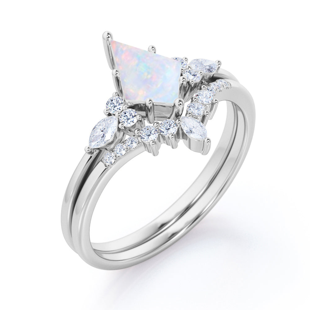 Crown 1.25 Ct Kite Cut Lab Created Opal Bridal Set