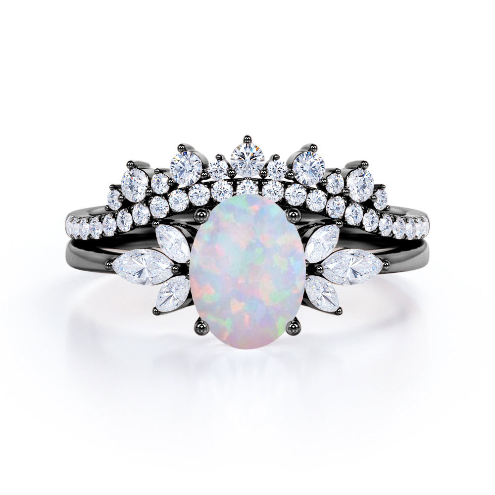 Seven Stone 1.75 Ct Oval Cut Lab Created Opal Bridal Set