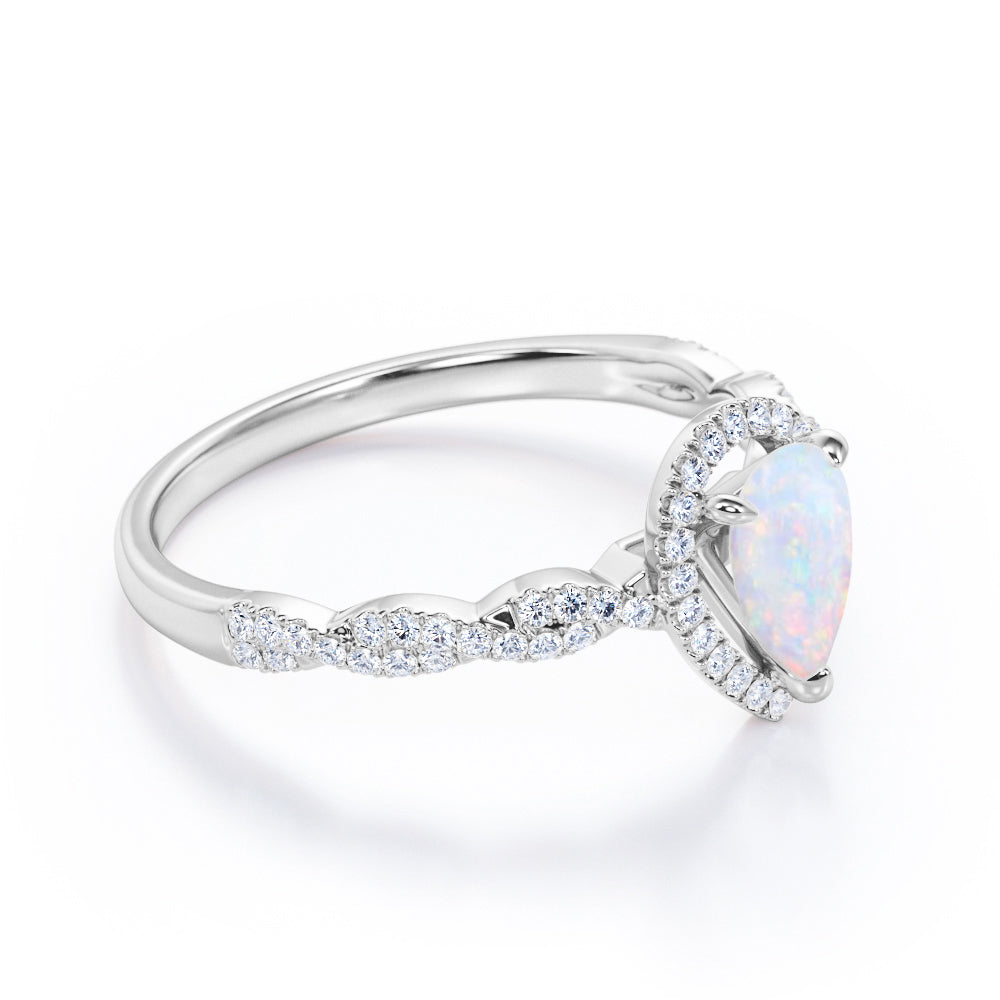 Twisted 1.45 Ct Pear Cut Lab Created Opal Engagement Ring