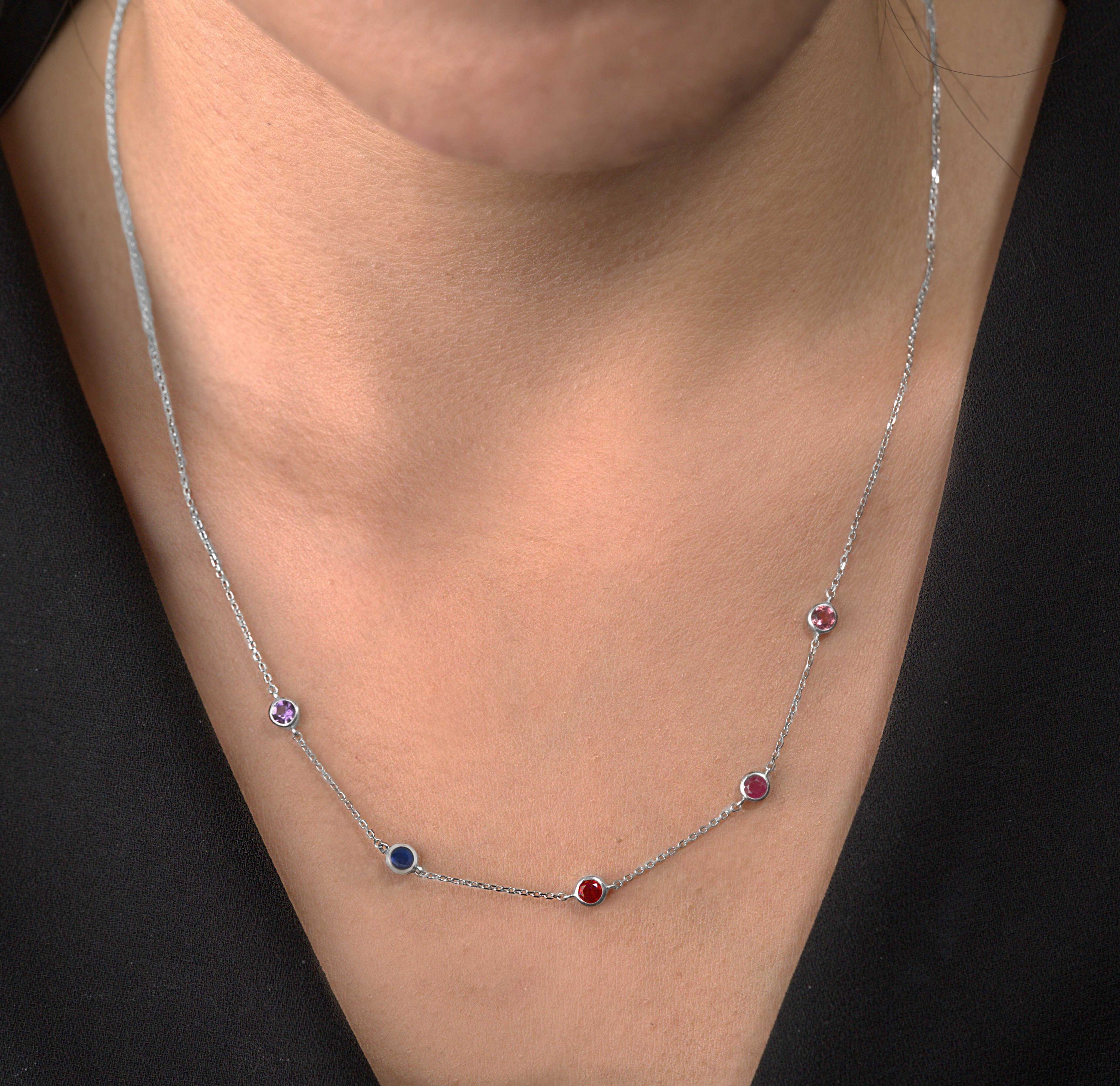 Dainty 5 stone Custom Birthstone Pendant Station Necklace in 18k white gold over women
