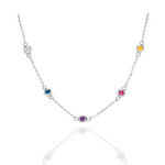 Elevate your style with our dainty 5-stone custom birthstone pendant station necklace in 18k white gold over silver. This affordable and handmade jewelry piece is a true embodiment of elegance and individuality. Featuring five delicately crafted gemstones, this necklace allows you to personalize it with your preferred birthstones or gemstones of significance. Whether you opt for vibrant sapphires, mesmerizing emeralds, or any other gemstone that holds a special place in your heart, this necklace becomes a unique reflection of your personal style. Not only can the gemstones be customized, but the 18k gold plating can also be tailored to your liking. Choose between the colors: yellow gold, rose gold, or black gold, adding a personalized touch that perfectly complements your aesthetic. Handcrafted with precision and passion, this pendant station necklace embodies exquisite craftsmanship. The dainty design and arrangement of the gemstones create a graceful and captivating piece that effortlessly enhances any outfit. Celebrate your individuality with our dainty 5-stone custom birthstone pendant station necklace in 18k white gold over silver. This one-of-a-kind jewelry piece showcases affordability, handmade artistry, and the freedom to customize gemstones and gold plating to create a necklace that is uniquely yours. With the freedom to customize gemstones and gold plating to match your unique identity and style, this necklace allows you to express your true self with pride.Wear this beautiful piece as a statement of support, love, and unity, and embrace your authentic self every day.