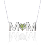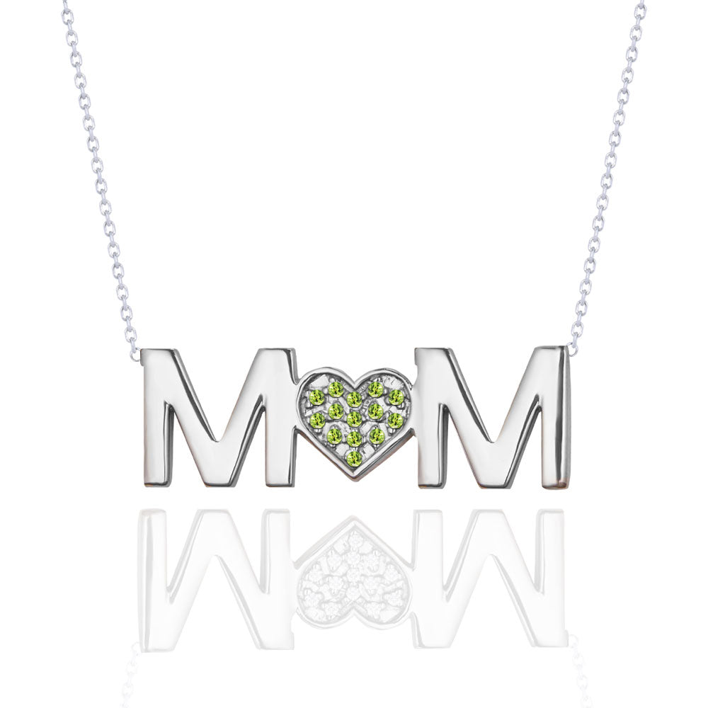 Express your love and affection for your mother with our MOM Pendant Necklace - Light Green Stone - August Birthstone in 18K White Gold over Sterling Silver on this Mother's Day. Carefully crafted to perfection, this cubic zirconia necklace includes 0.20 Carat round cut cubic zirconia in 18K White gold over the silver. Additionally, a personalized element is also added to the pendant with the color of the light green cubic zirconia stones which is the color of the August Birthstone. The chain of this beautiful cubic zirconia chain for sale is white and 18 inches long. With the graceful pendant on the sturdy chain, this item is the perfect Mother's day gift. If you are looking for a Mother's Day gift idea, then look no further! This mothers day necklace is an incomparable and affordable beauty. With its extraordinary design and the meaning it holds, this pendant necklace is the perfect way to express your unconditional love for your mother on this Mother's day. Make her feel special with this light green cubic zirconia stones silver necklace and she will be the happiest mother in the whole world.