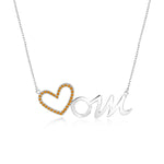 Open Heart Mom with Decorated Yellow Stone Pendant Necklace in 18K White Gold over Silver - November Birthstone - Gift for Mom