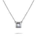 Pleasing 1 ct Princess Square Bezel Necklace in 18k White Gold over Silver