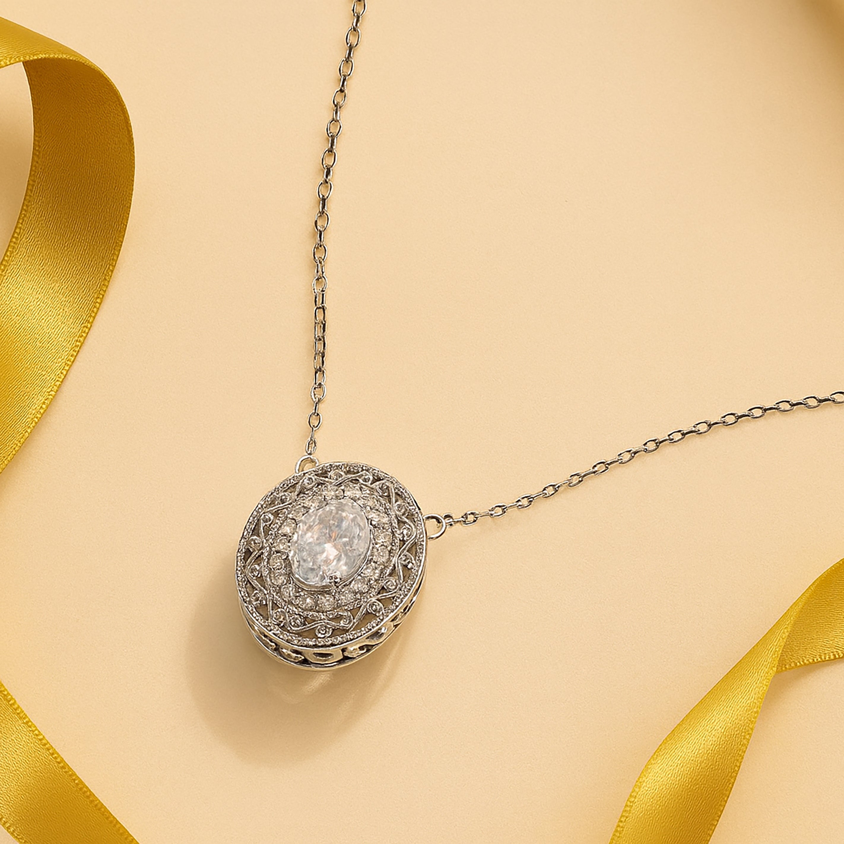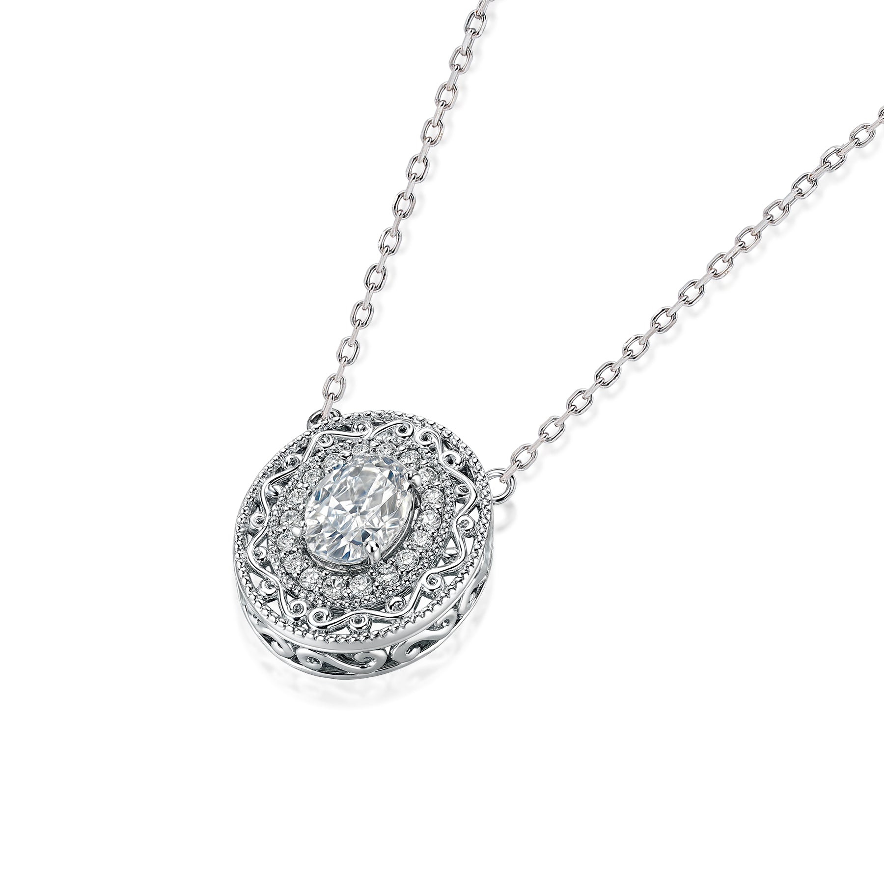 1.25 Carat Classic Oval Filigree Moissanite Pendant Necklace - in 18K White Gold Plating for Women