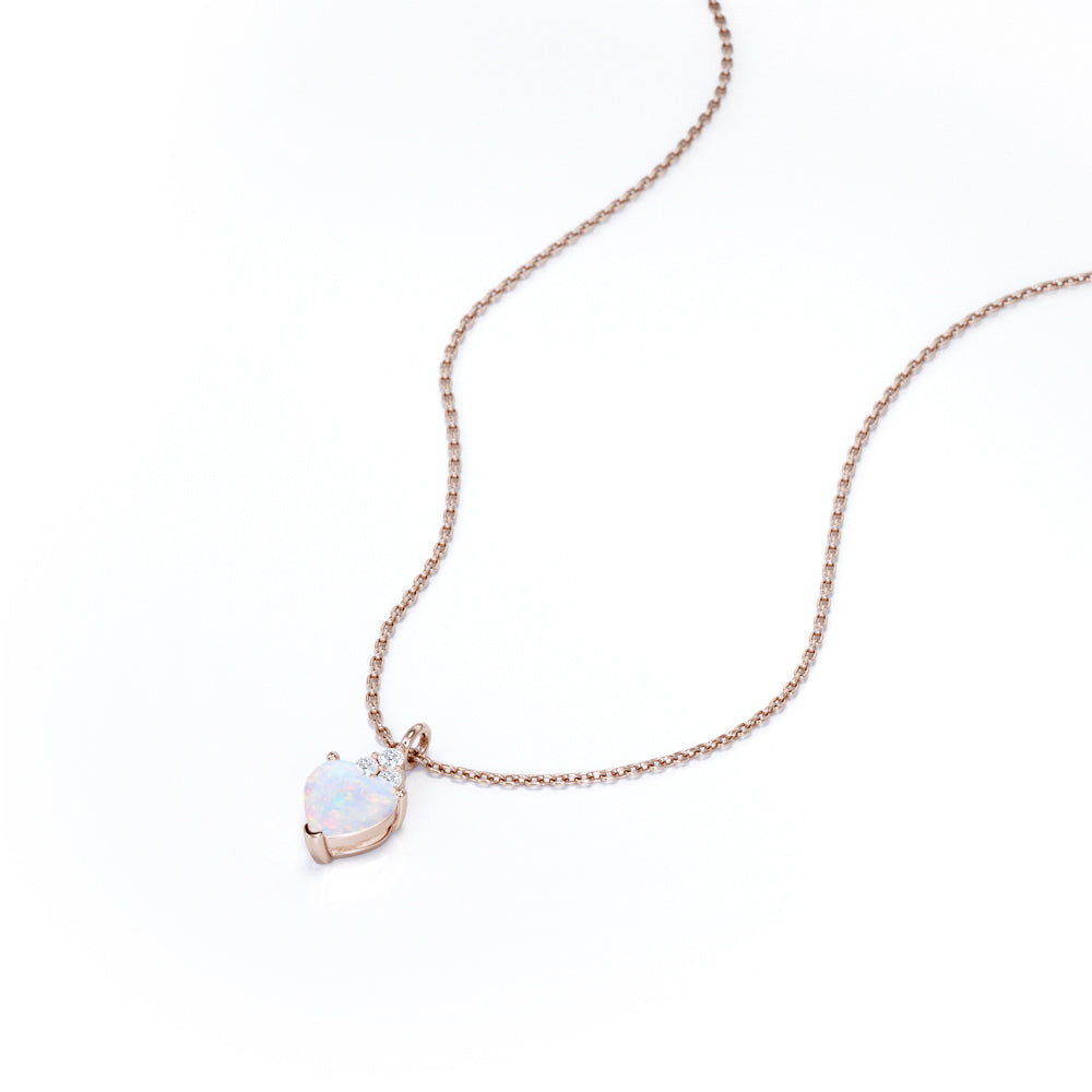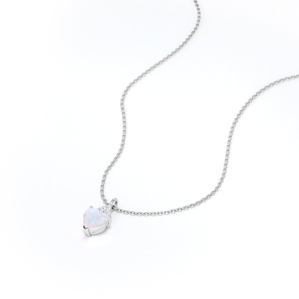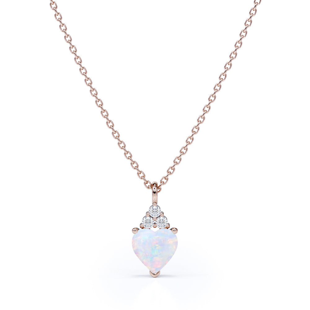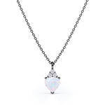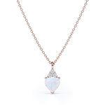 Delicate 1.05 Carat Heart Shaped Ethopian Opal and Diamond Three Prong Pendant Necklace In White Gold For Her.