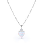 Delicate 1.05 Carat Heart Shaped Ethopian Opal and Diamond Three Prong Pendant Necklace In White Gold For Her. Make a statement with our heart shaped opal and diamond necklace. Consider a solitaire natural white fire opal and diamond pendant for a necklace that won't overpower your wardrobe. A dynamic 1 carat opal is held by three prongs and three dainty round white shimmering diamonds of 0.5 carat sits on the top. You can pair it with minimal earrings in either casual or formal attire so your necklace stands out. Handmade with utmost love and devotion, this delicate 1.05 carat heart shaped Ethopian opal and diamond three prong pendant necklace in white gold for her can also be customised to 18k Gold plating over silver, 10k Gold or 14k Gold as per your preference. Simply press the add to cart button now and make this alluring piece yours forever.