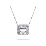 Distinctive 1 carat Emerald Shaped Moissanite - Halo Sideways Emerald - Pendant Necklace in 18K White Gold over Silver