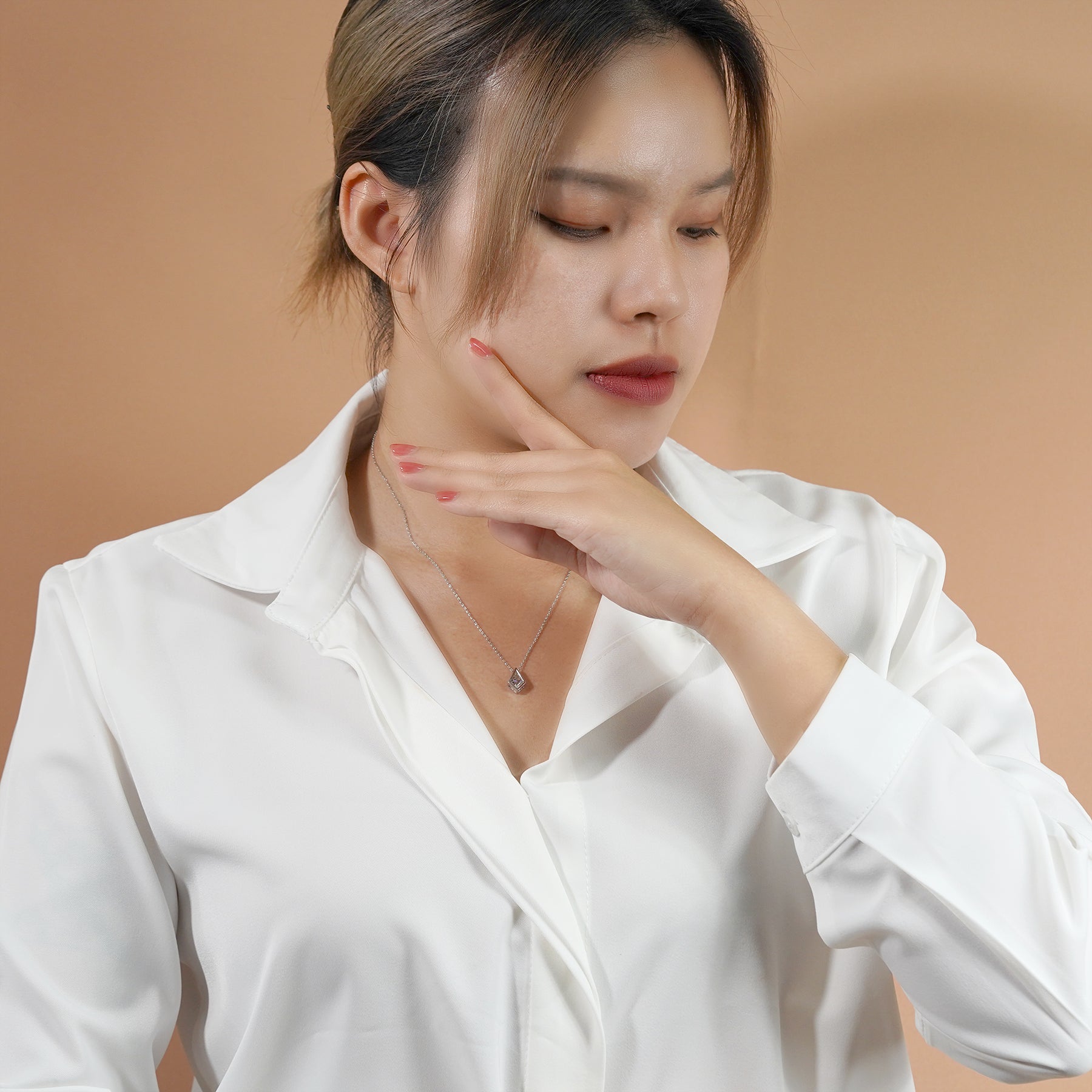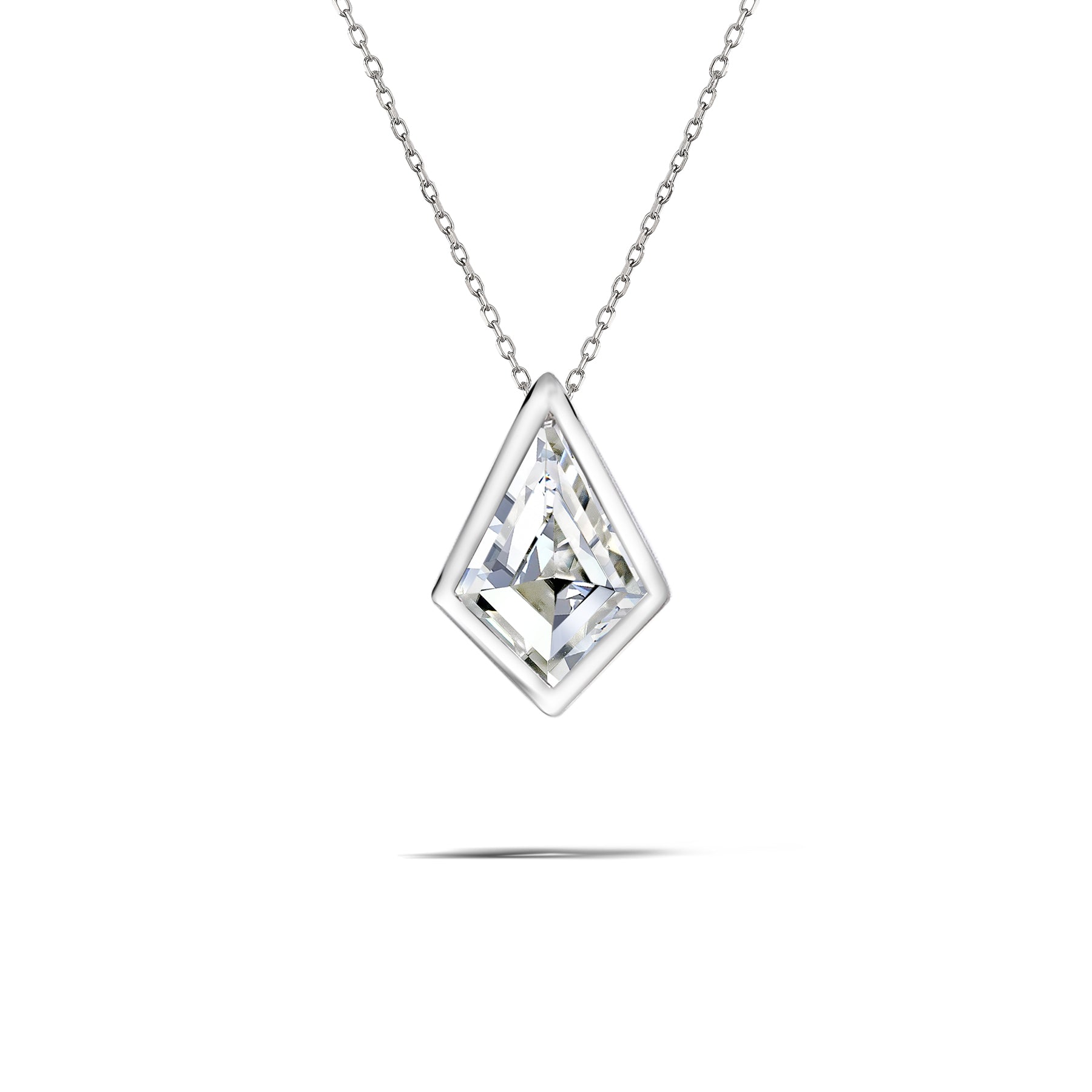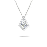 Attract every attention with this Gleaming 1 ct Kite Shaped Moissanite Bezel Slide Pendant Necklace in 18K White Gold over Silver. This kite shaped pendant necklace showcases a brilliant 1-carat kite-shaped moissanite, skillfully set within a secure bezel set pendant. The clean and minimalistic solitaire bezel pendant setting allows the captivating beauty of the kite-shaped moissanite to take center stage. The fancy shaped moissanite, delicately and skillfully cut, sits brightly like a star at the center of this female pendant necklace. Its uniqueness and edge-cutting design allows this female pendant necklace to match with any of your ensemble. This 1 carat solitaire pendant perfect choice for women who appreciate both individuality and timeless design.