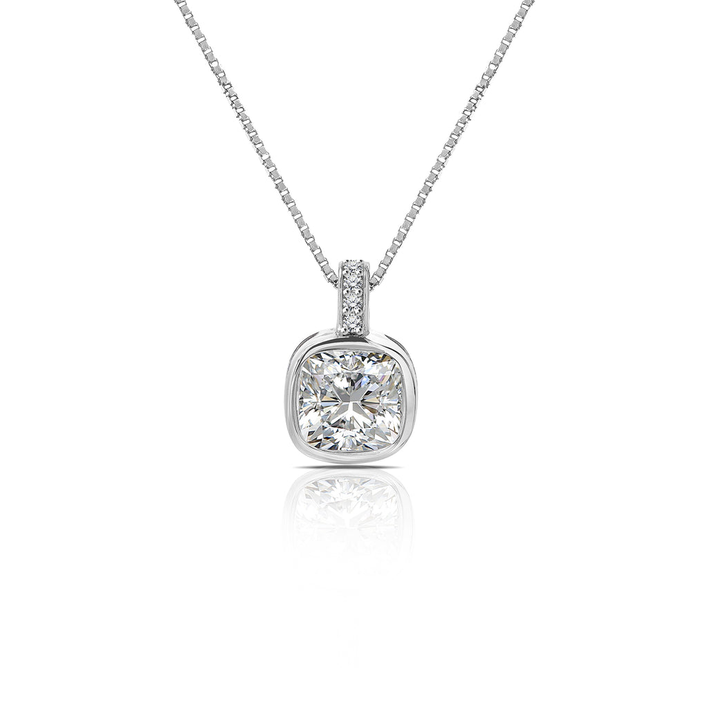 Minimalist 1.8 Carat Cushion Cut Bezel Pendant Necklace in Sterling Silver - Solitaire Pendant