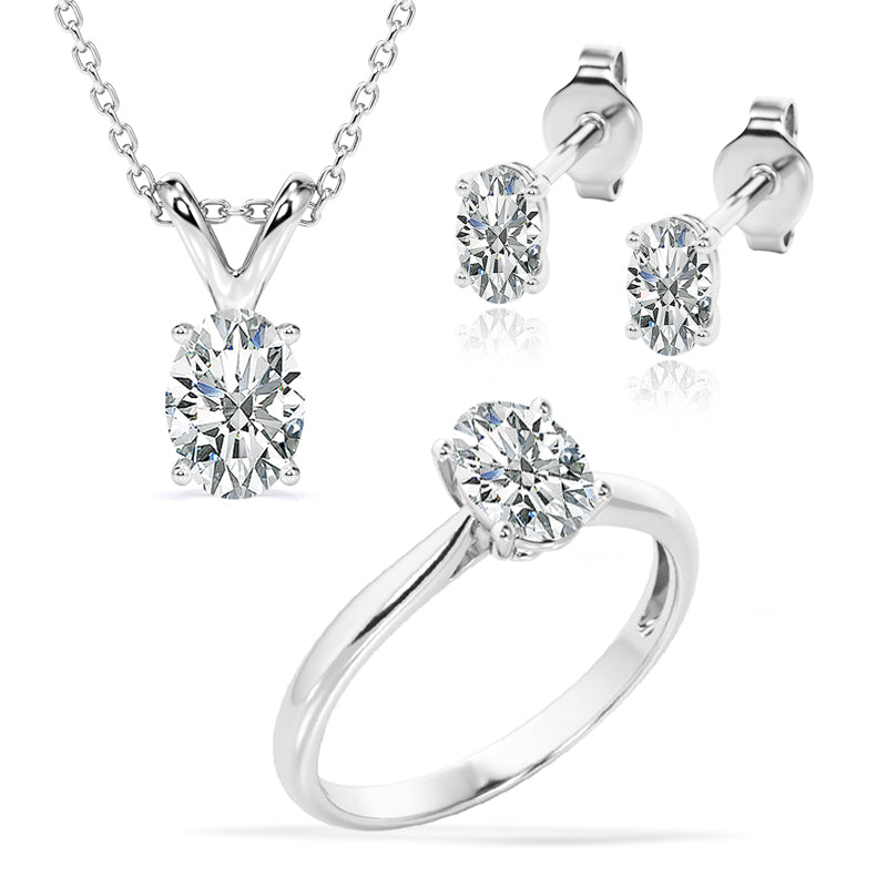Beautiful Gift Set of 3 Carat Oval Moissanite with Ring, Earrings & Pendant